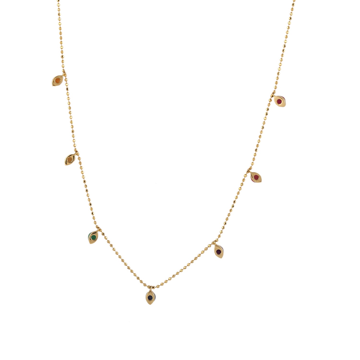 18K Yellow Gold Sapphire Multi-Gemstone Bead Chain Necklace – Handmade Fine Jewelry