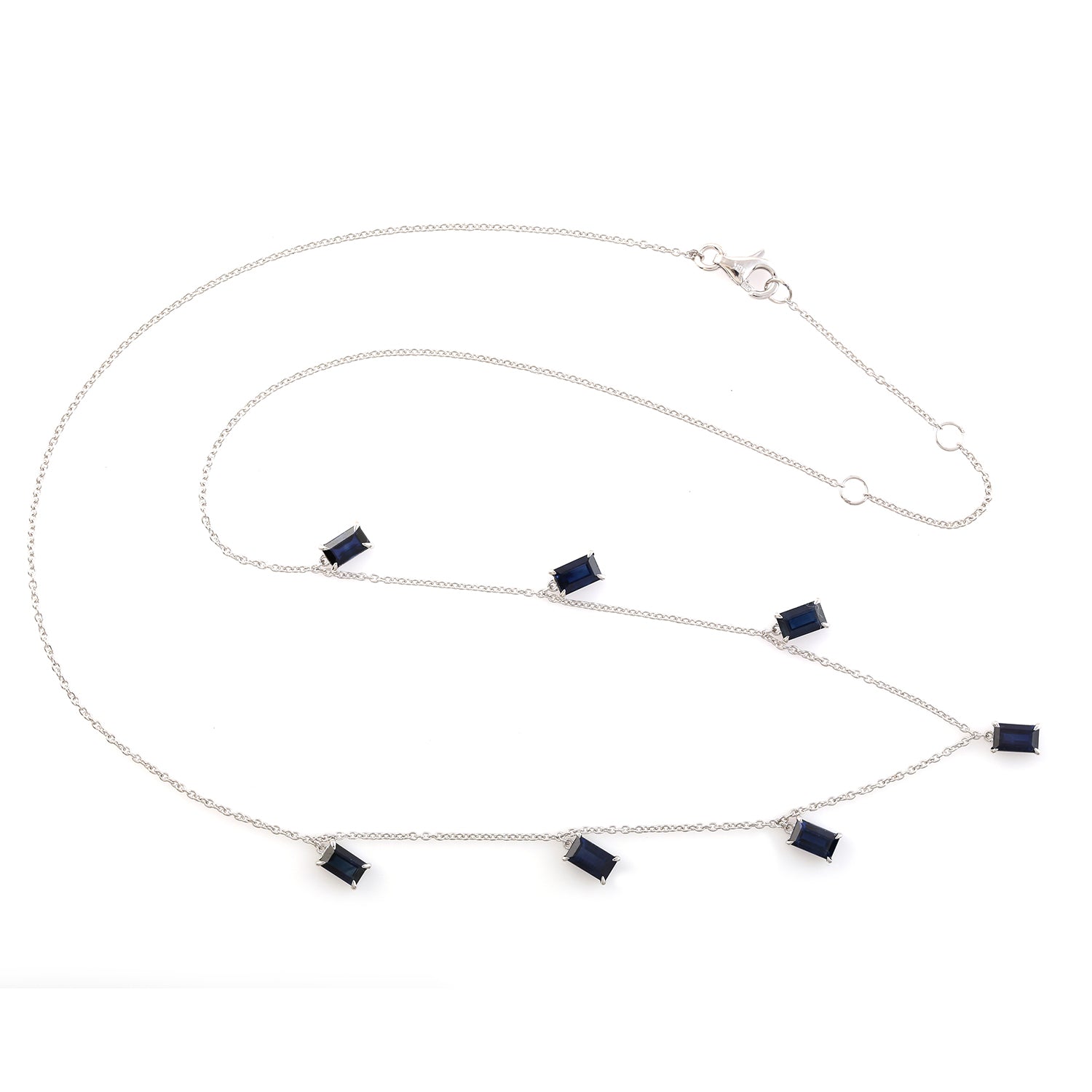 Baguette Blue Sapphire Station Necklace in 18K White Gold – Princess Style Gemstone Jewelry