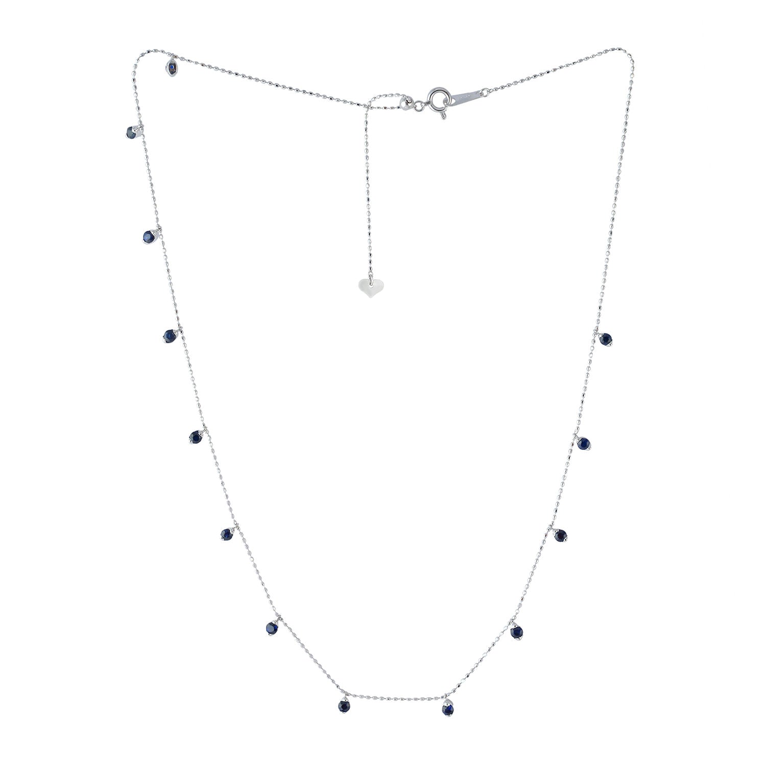 Blue Sapphire Gemstone Station Chain Necklace In 18k White Gold