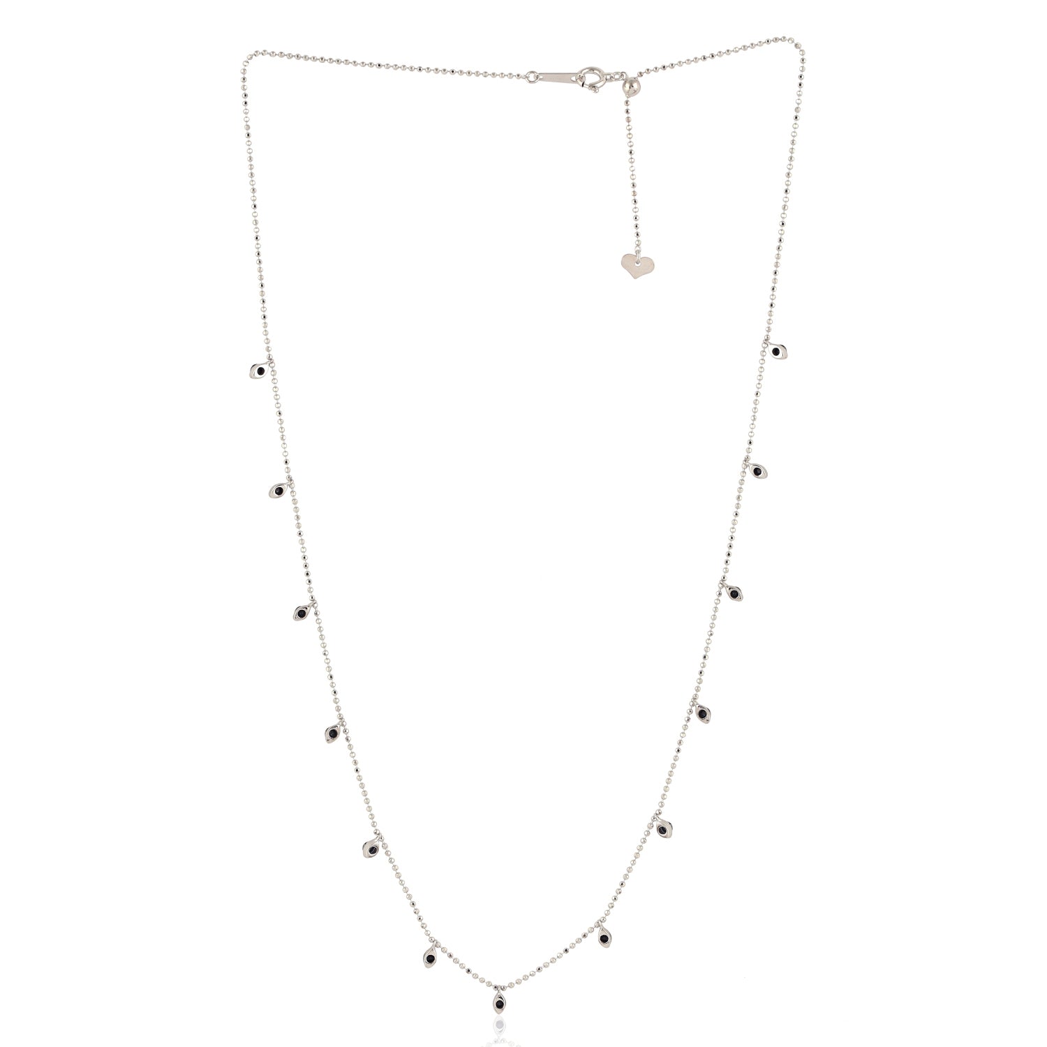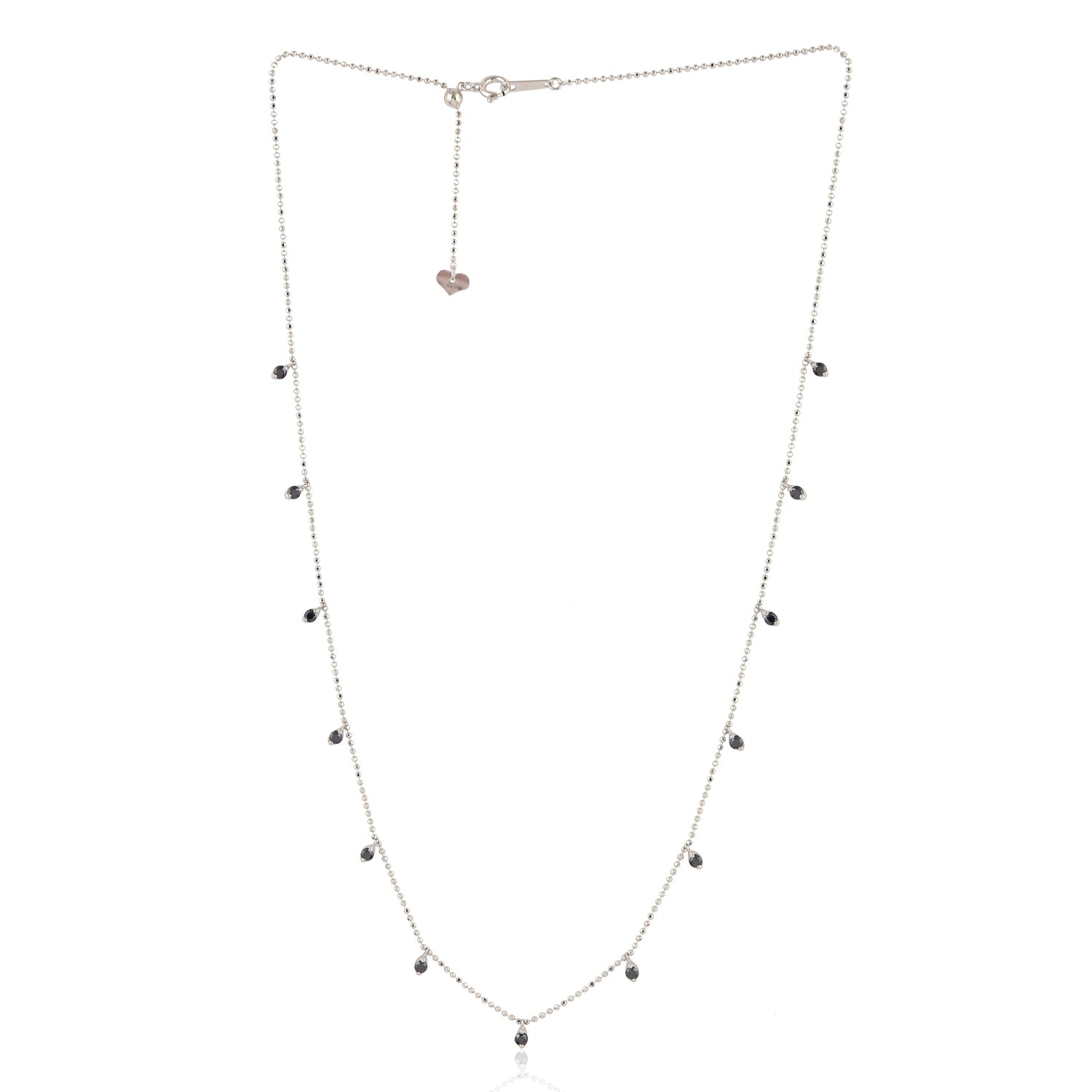 18k White Gold Natural Black Diamond Dainty Chain Necklace On Sale
