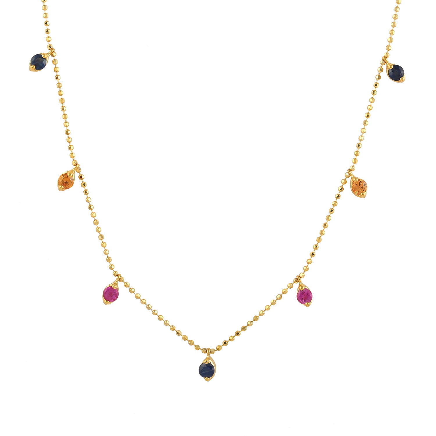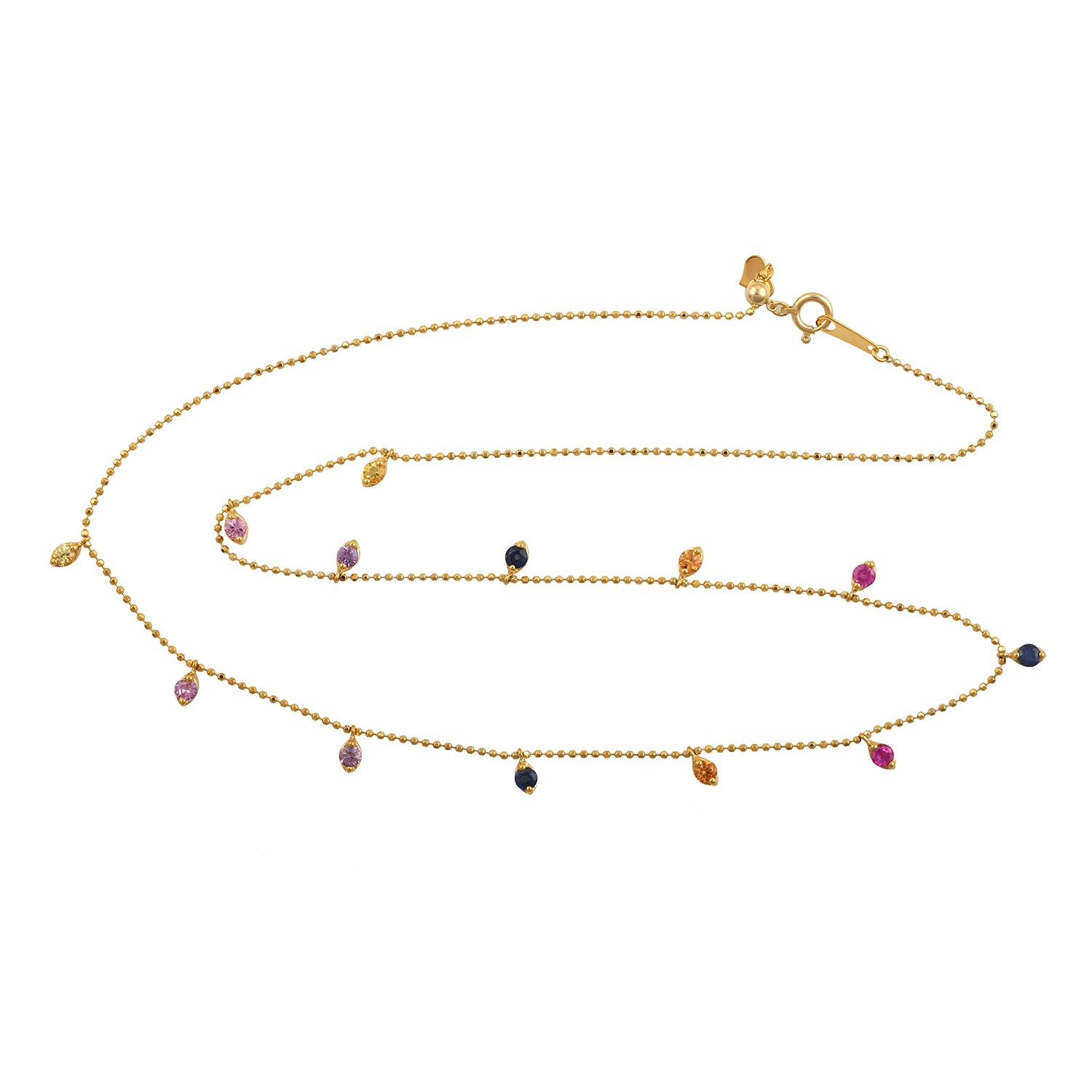 Multicolor Sapphire Station Chain Necklace Jewelry In 18k Yellow Gold