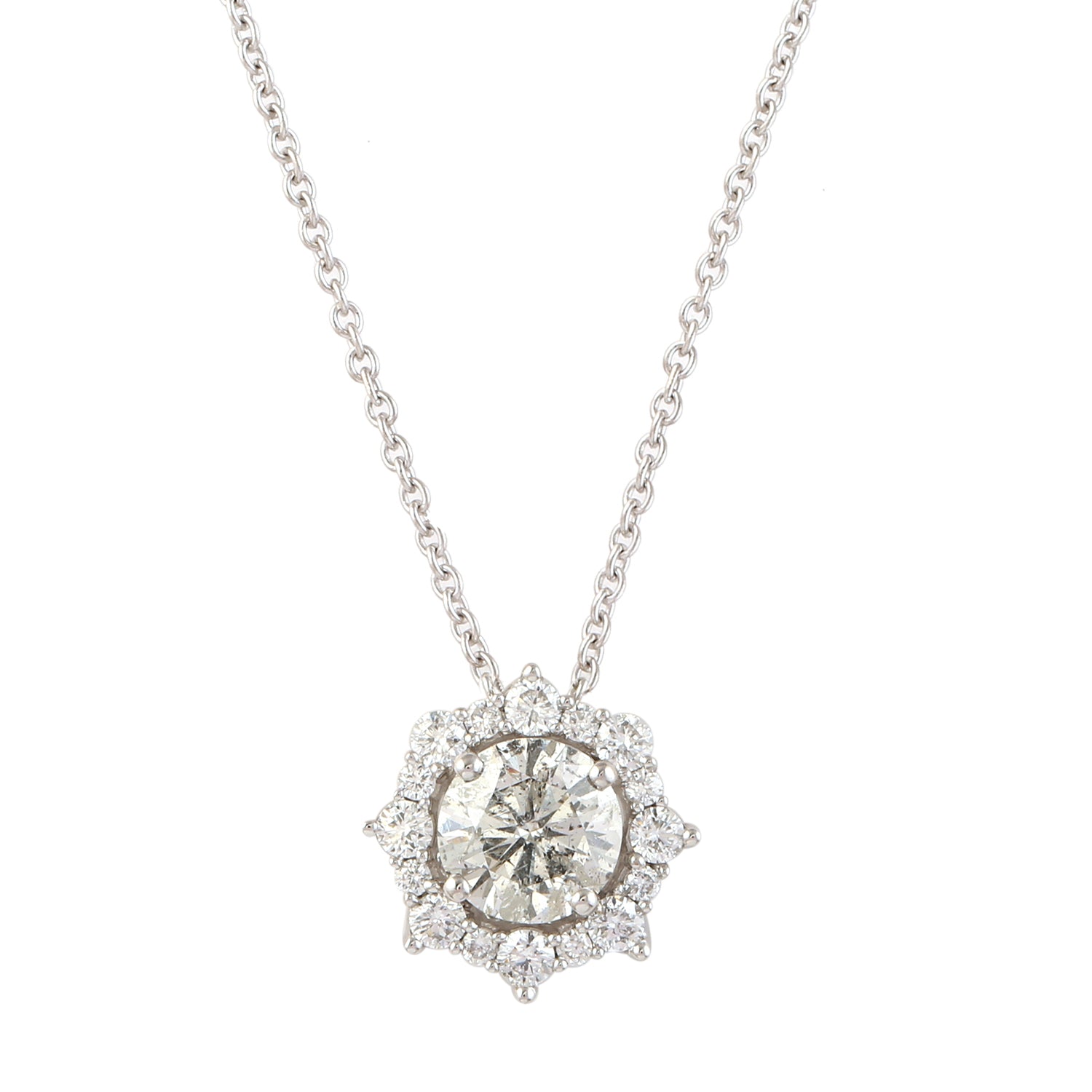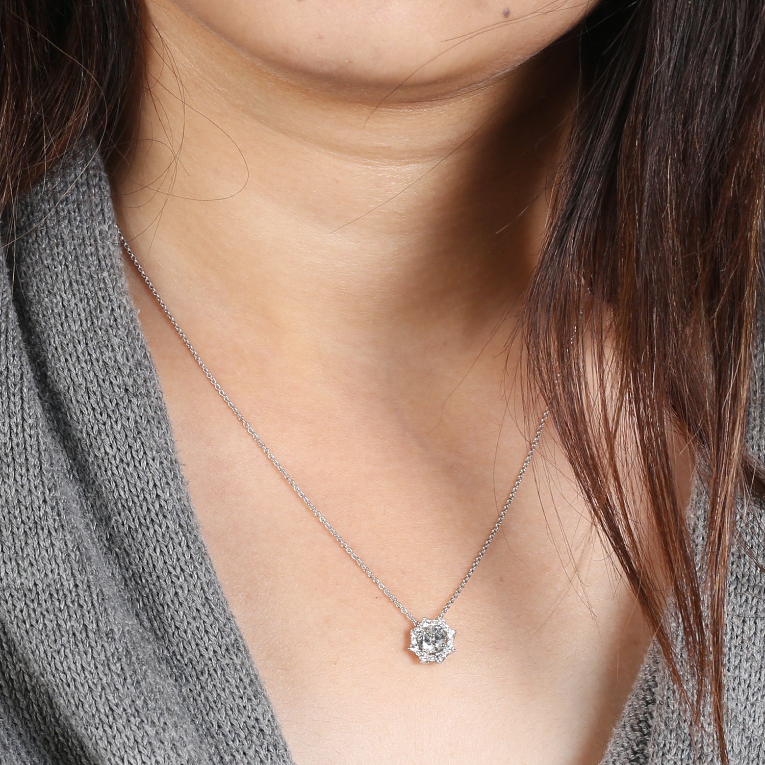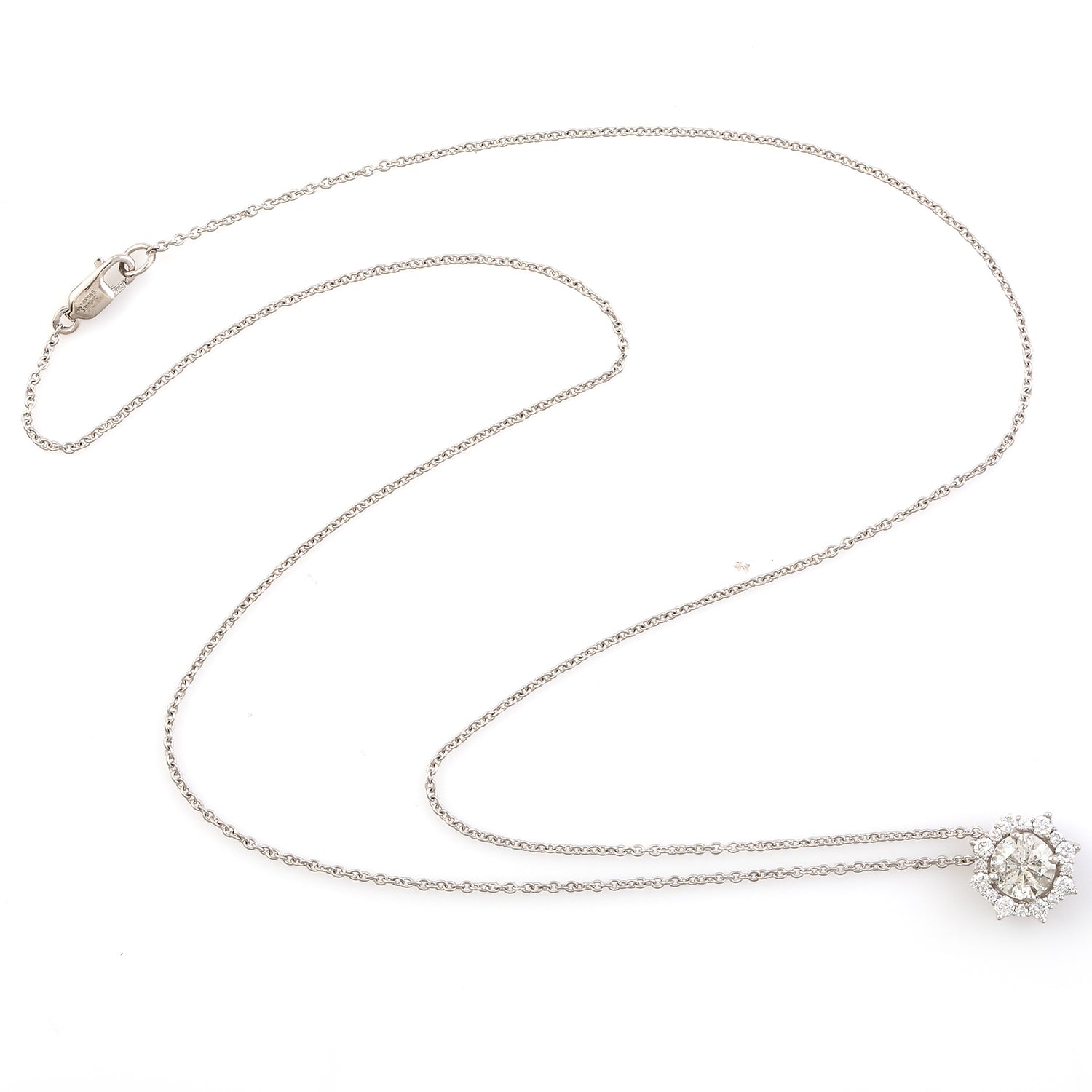 Natural Diamond Prong Set Princess Necklace In 14K White Gold