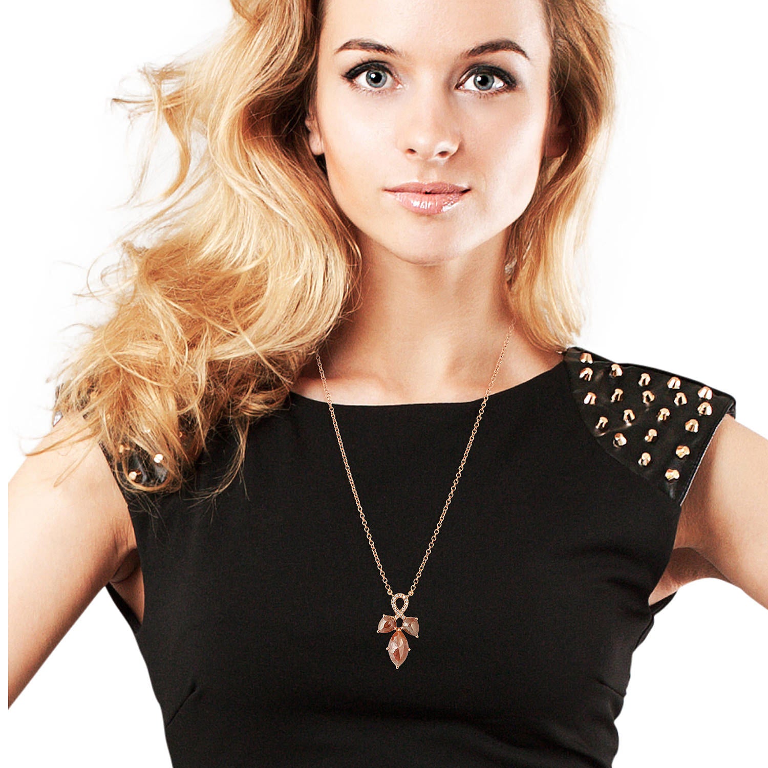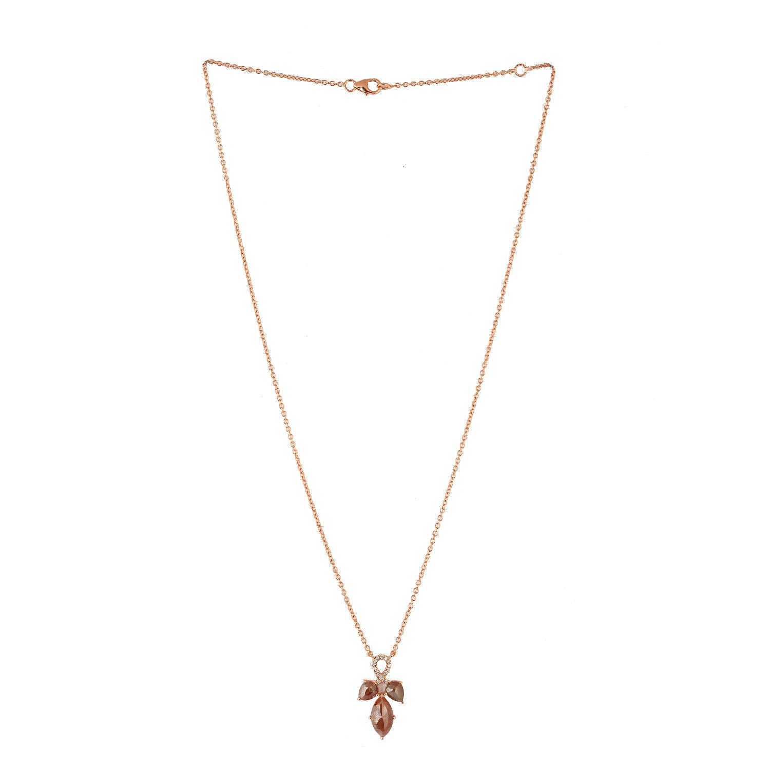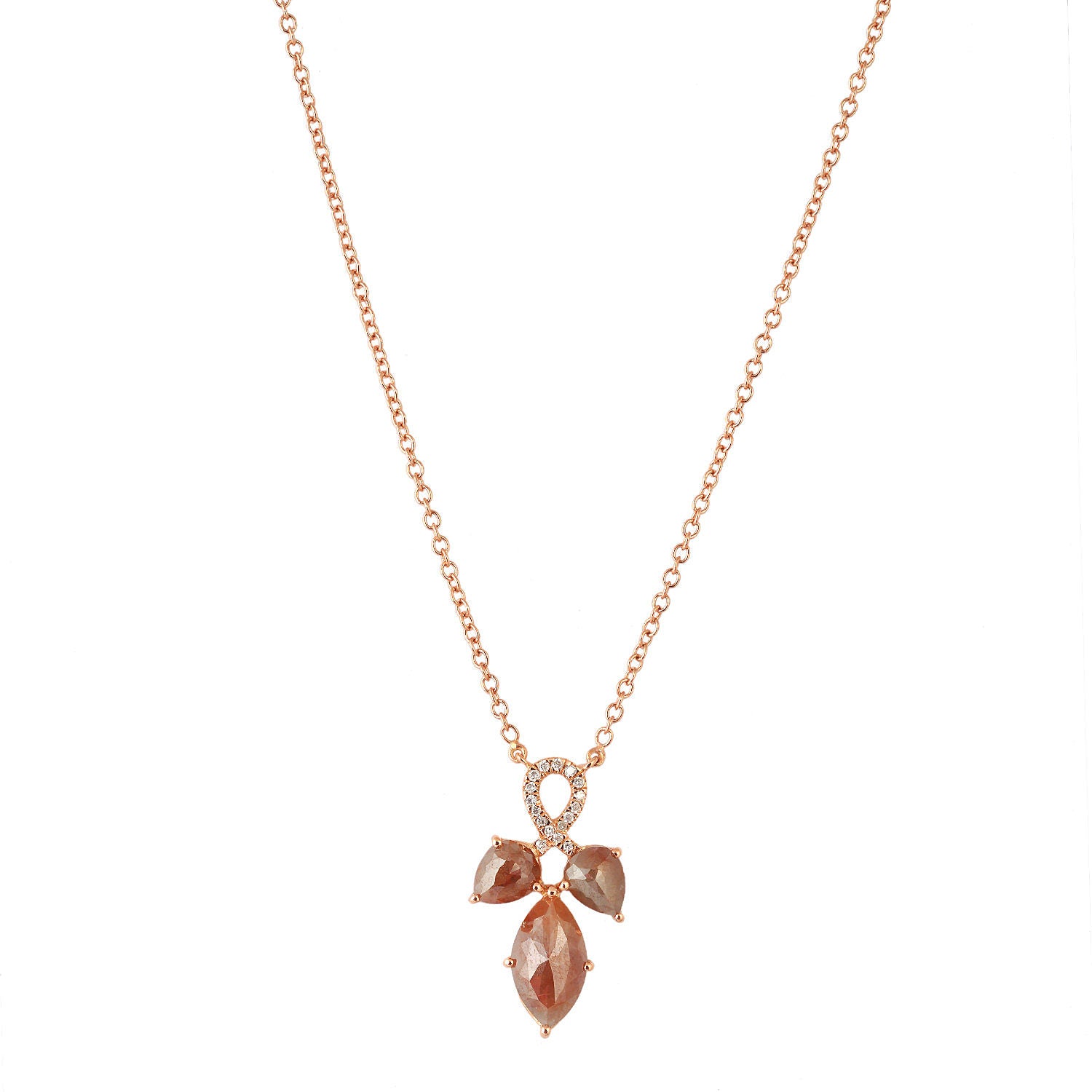 • Natural Diamond Three Stone Leaf Design Dainty 18k Rose Gold Necklace