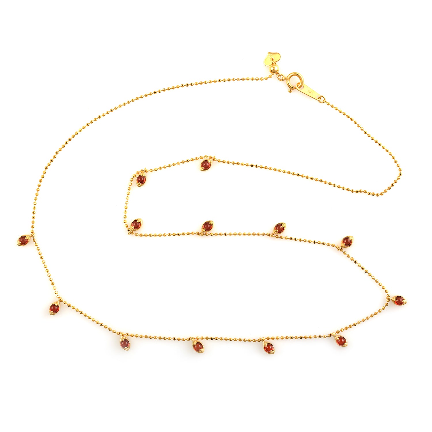 • Natural Garnet 18k Yellow Gold Handmade Dainty Necklace For Women