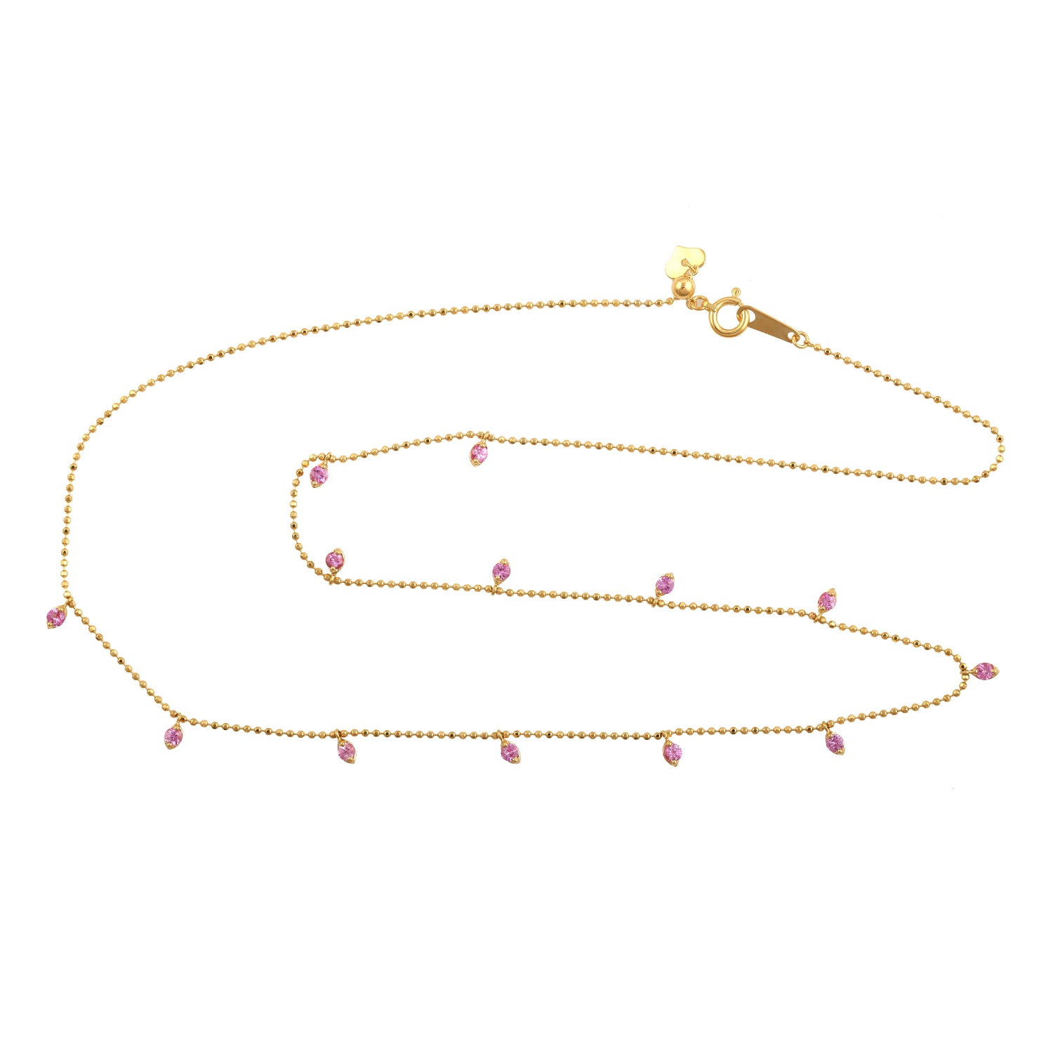 Pink Sapphire Gemstone Dot Bead Chain Necklace in 18K Yellow Gold – Dainty Jewelry