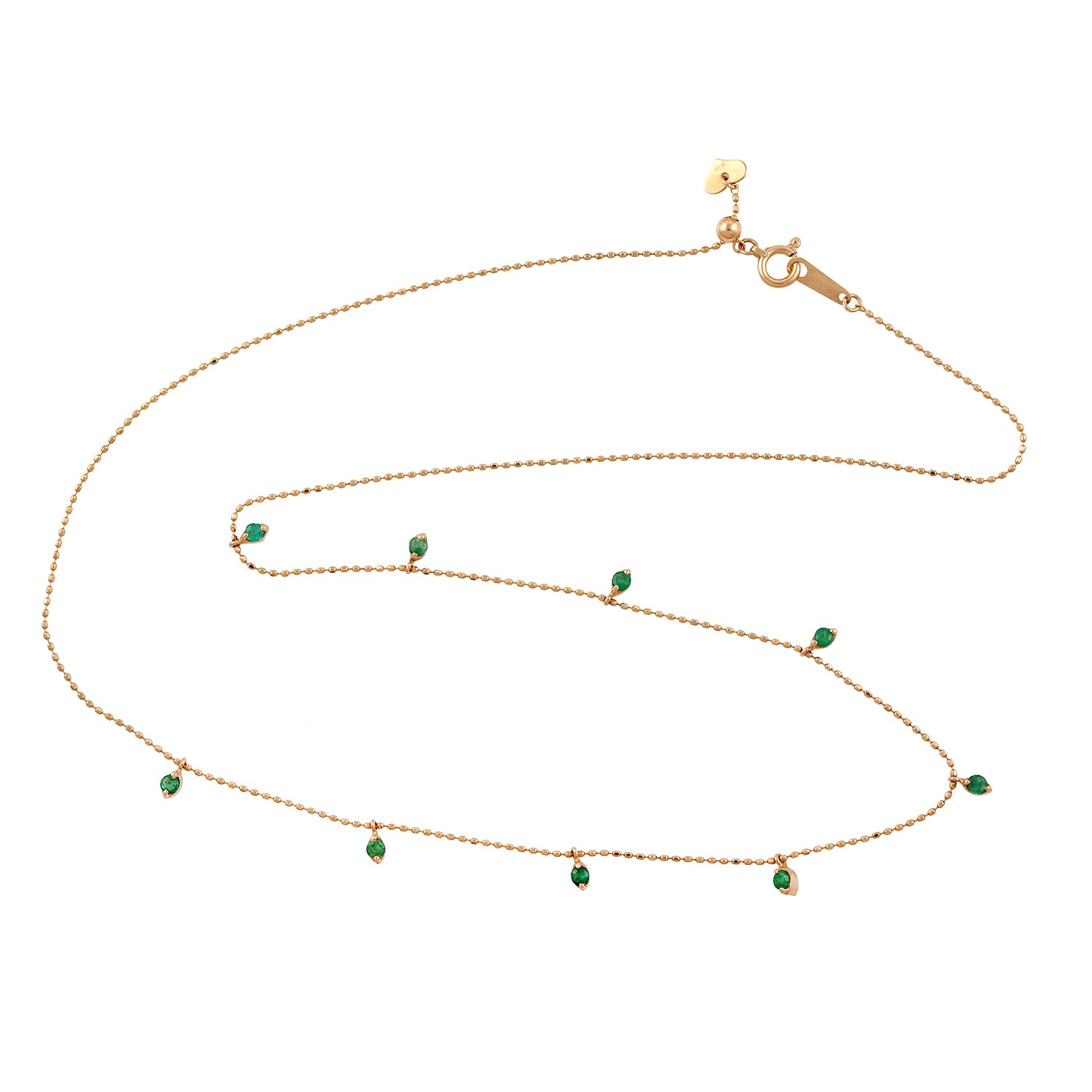 Prong Emerald Gemstone Beads In 18K Yellow Gold Princess Necklace For Her