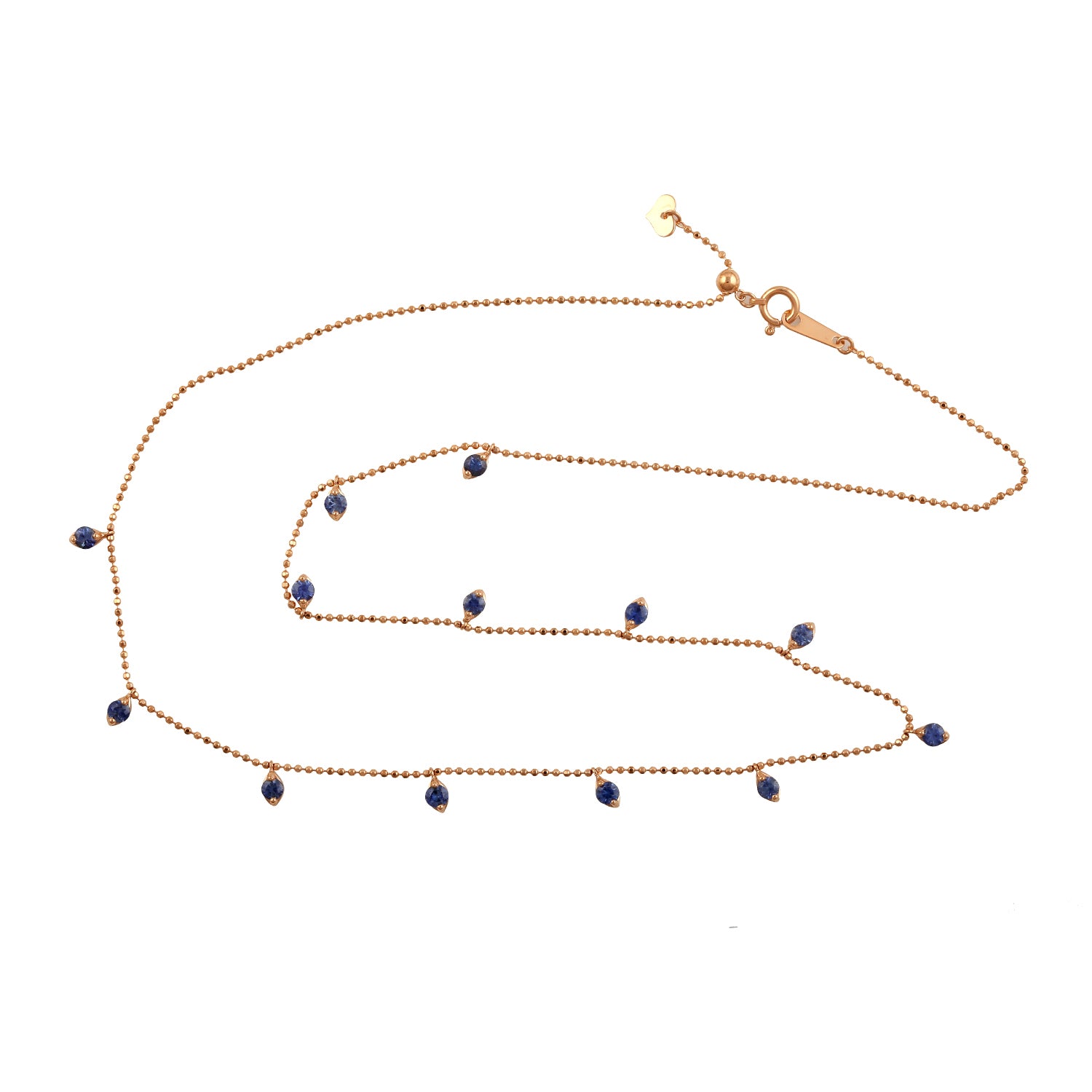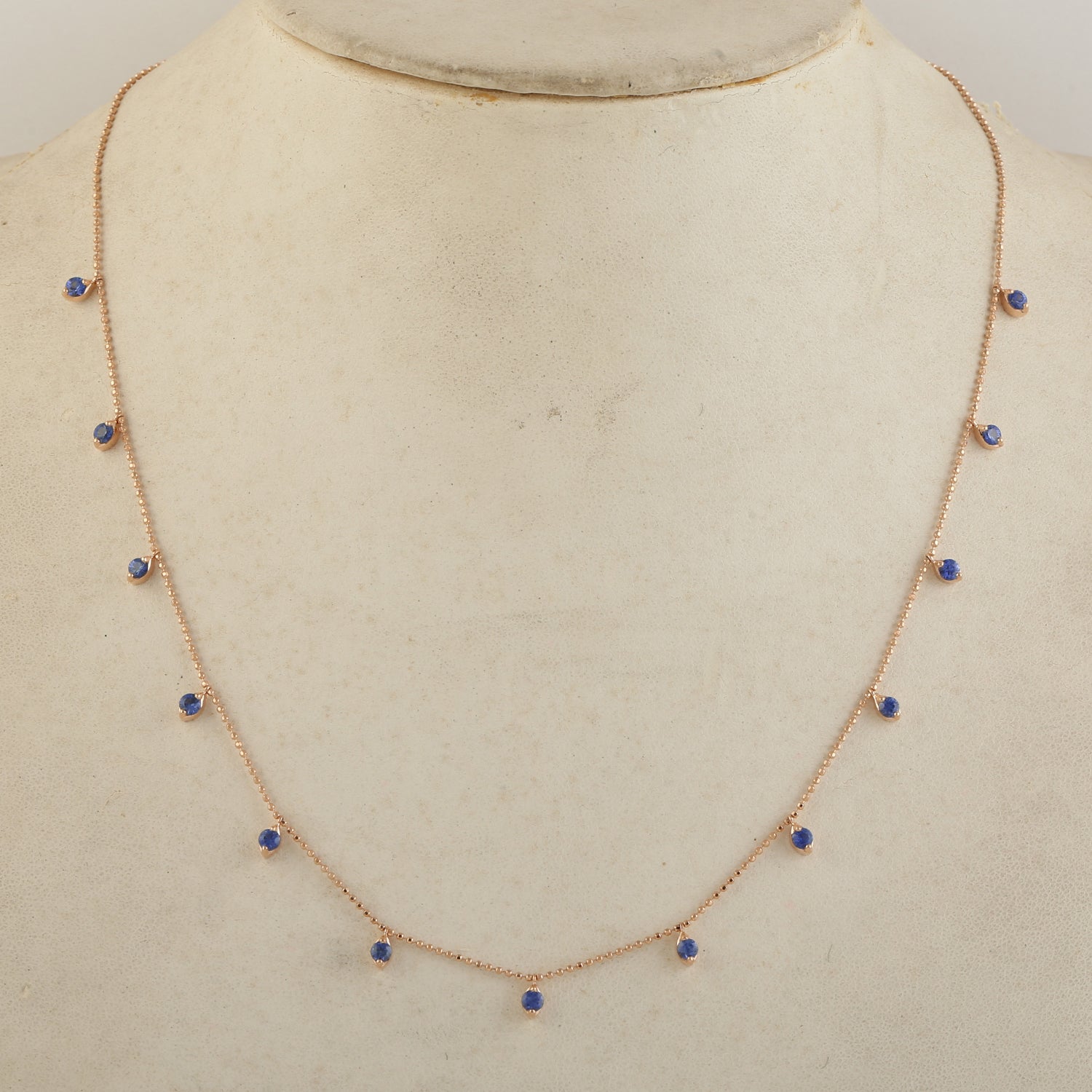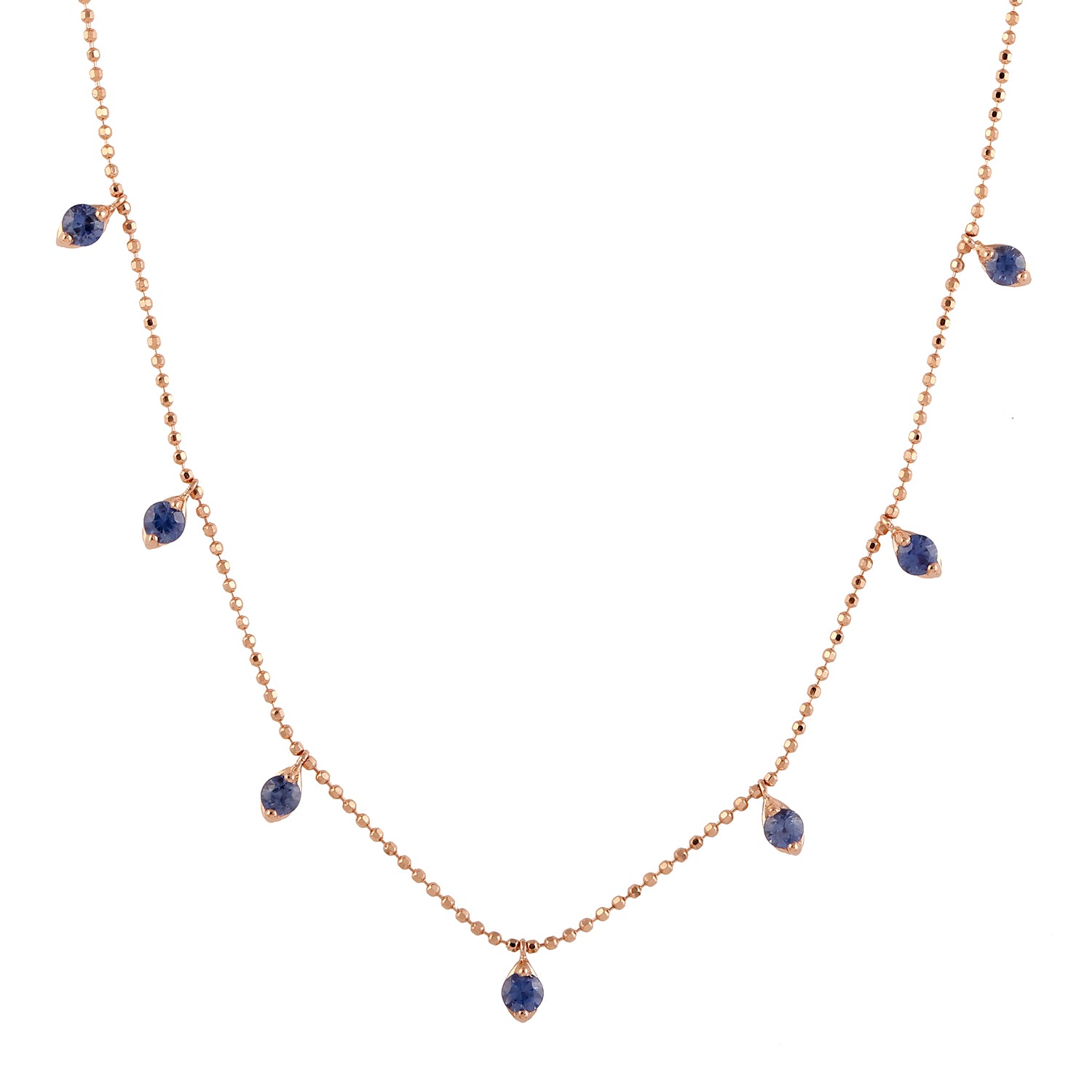• Blue Sapphire Dot Chain Necklace Jewelry In 18k Rose Gold For Her