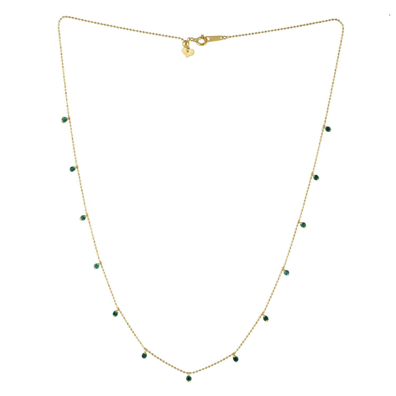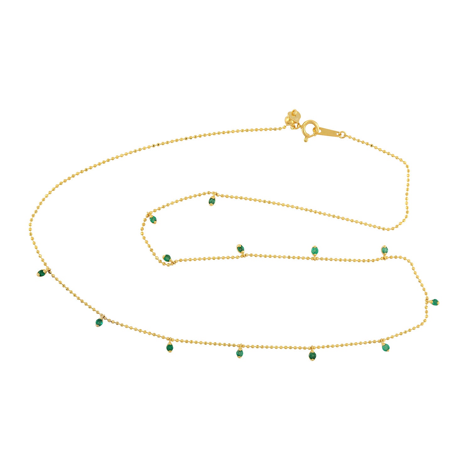 Prong Emerald Gemstone Beaded Princess Necklace In Yellow Gold