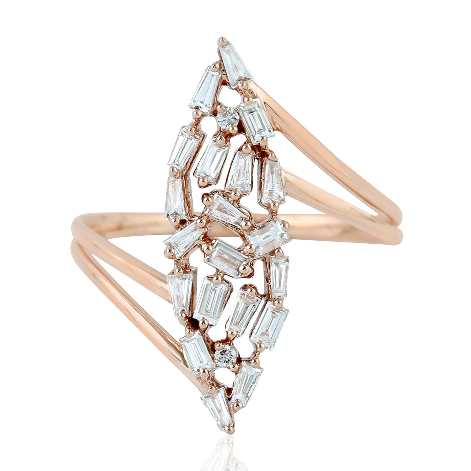 18K Rose Gold Prong Baguette Cut Diamond Marquise Long Ring