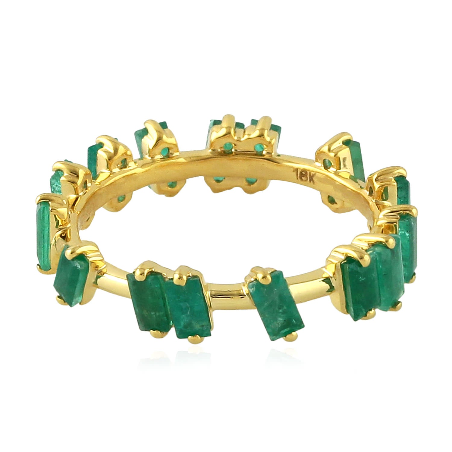 Baguette Cut Emerald Gemstone Band Ring In 18K Yellow Gold