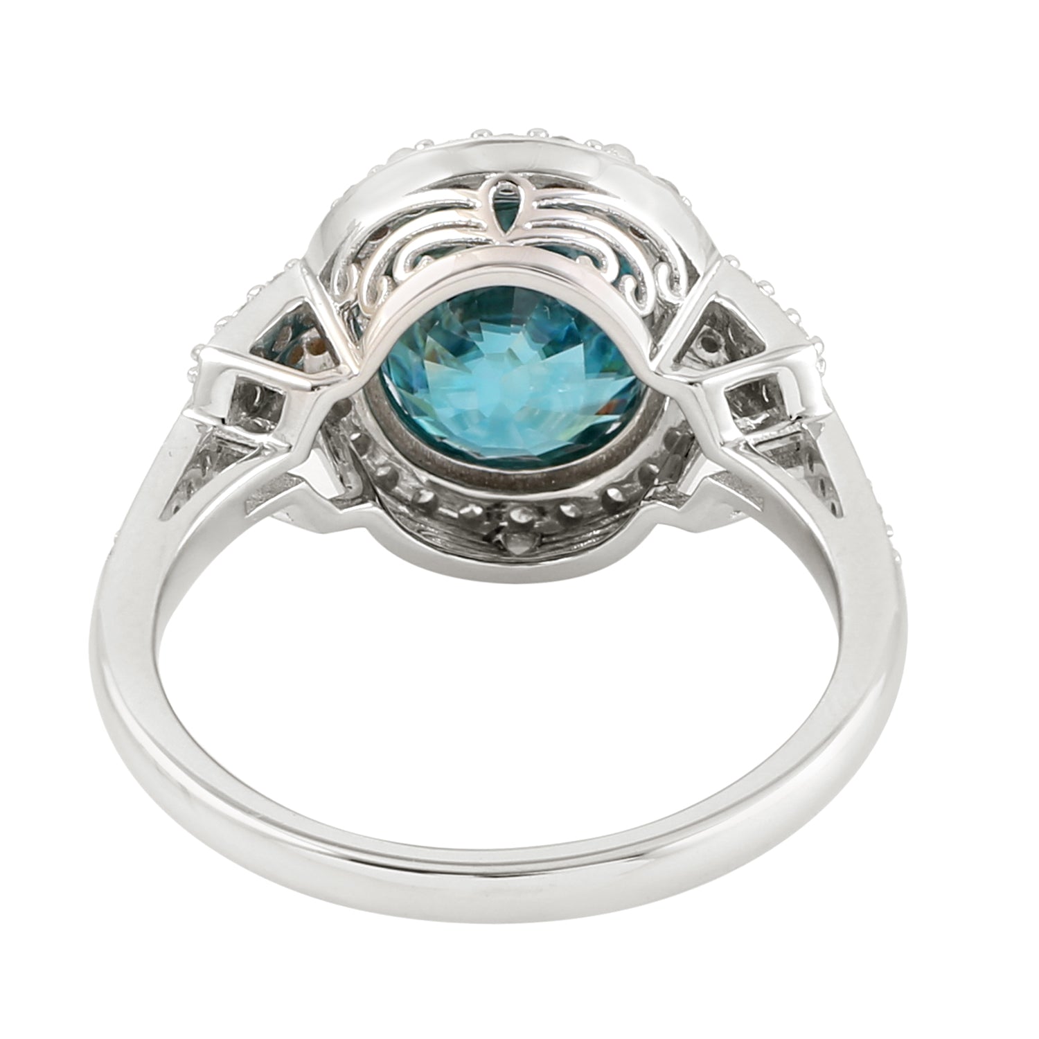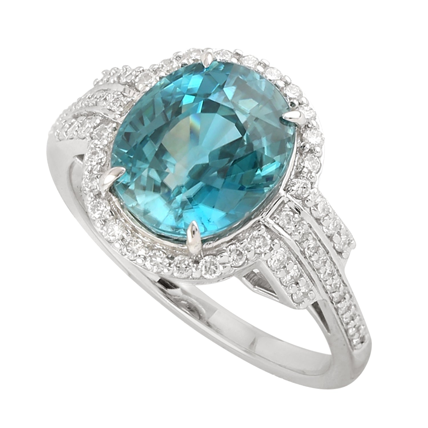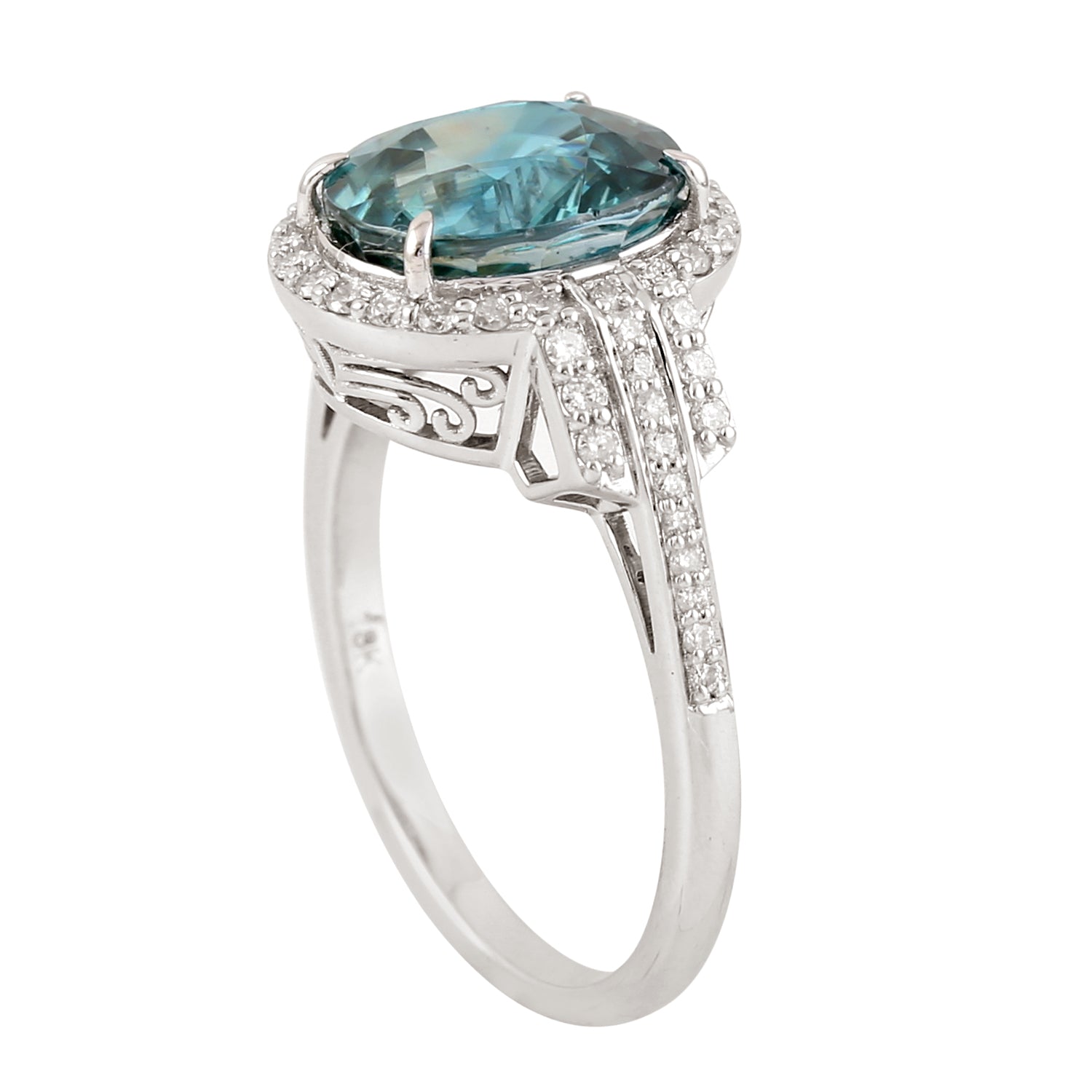 Oval Blue Zirconia & Diamond Halo Solitaire Ring in 18K White Gold