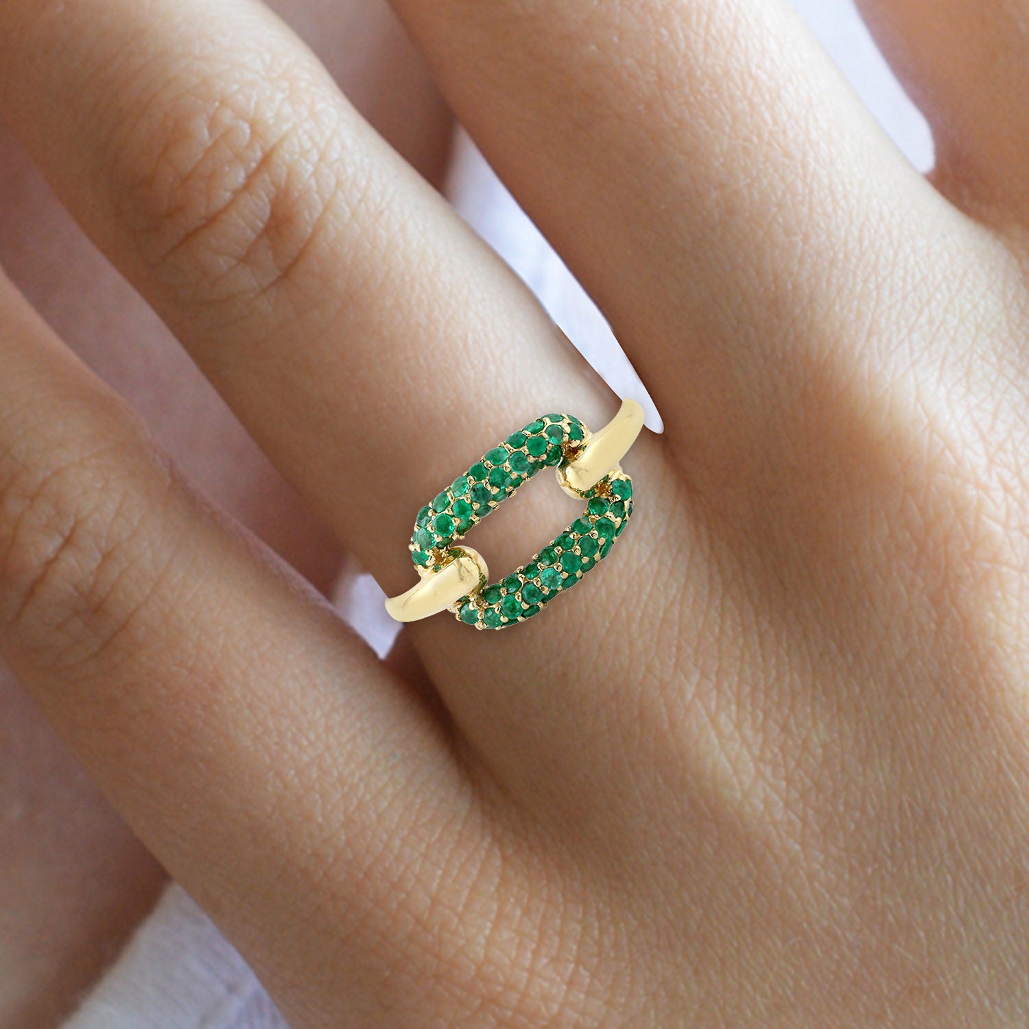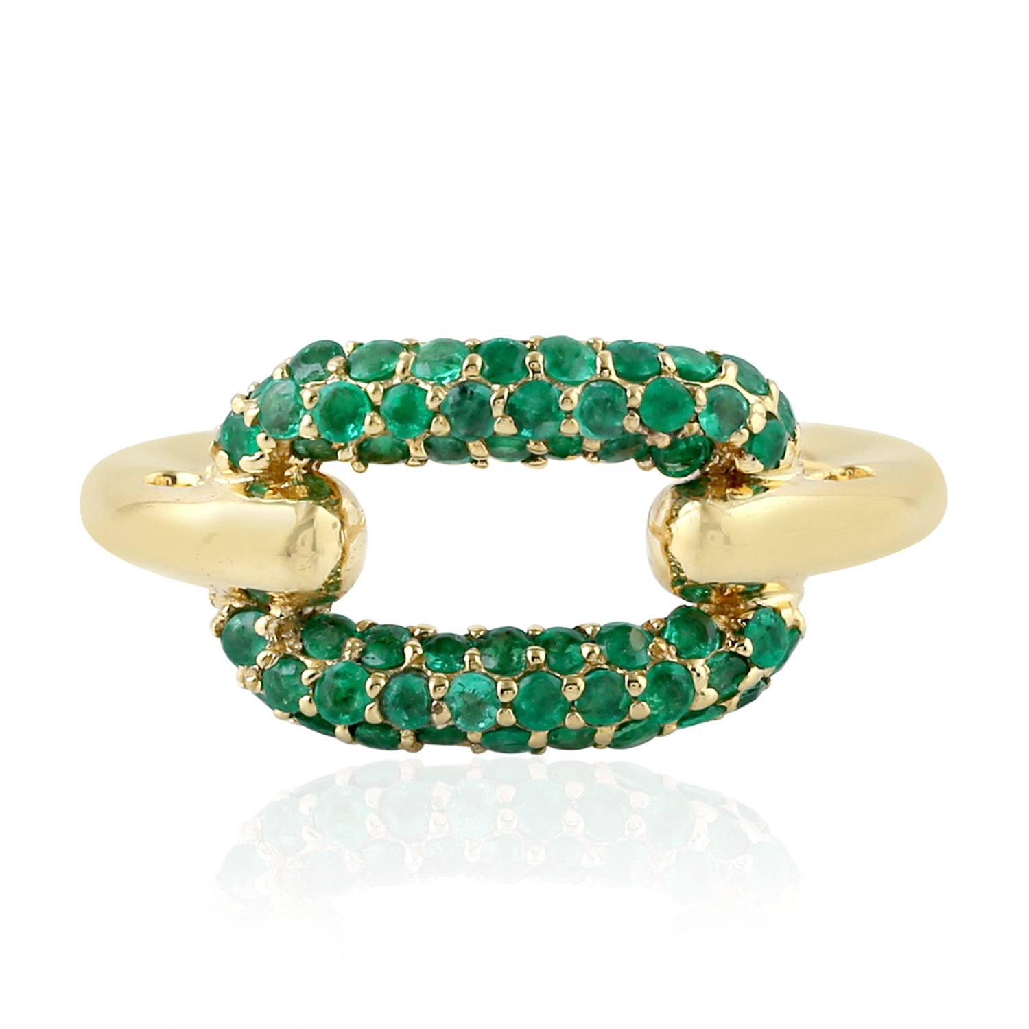 Pave Emerald Gemstone Designer Ring In 18K Yellow Gold For Her