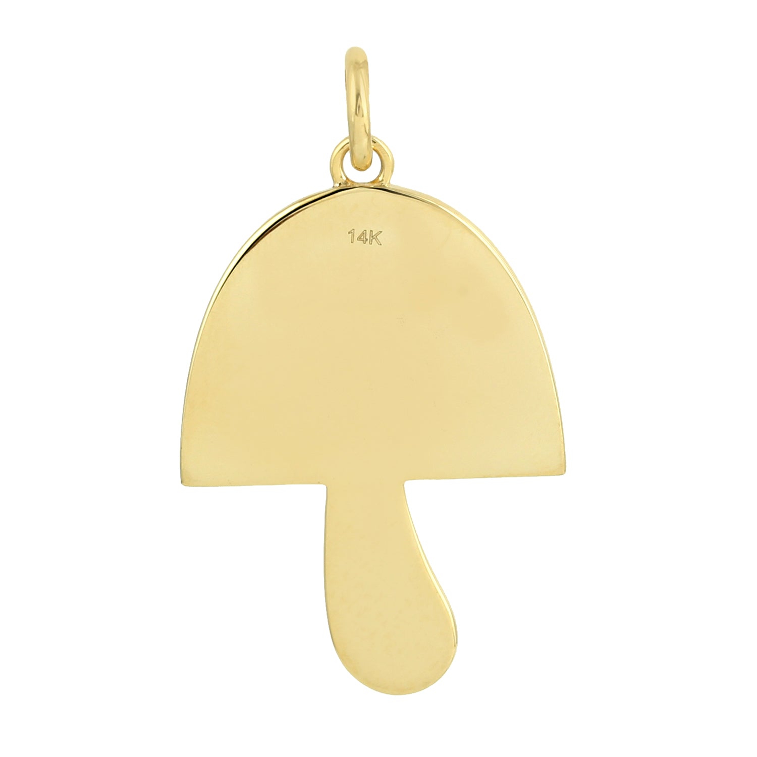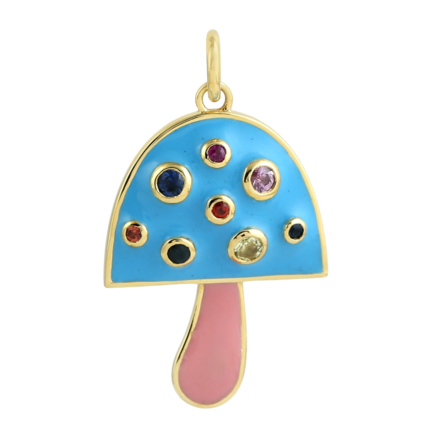 14k Yellow Gold Mushroom Pendant with Bezel Set Multi-Sapphire & Enamel – Whimsical Fine Jewelry Charm