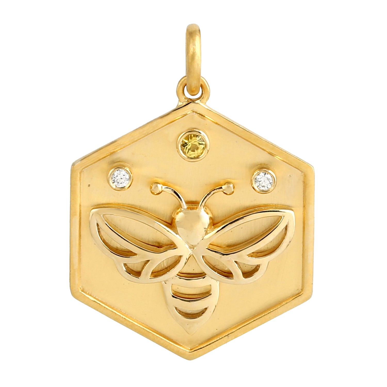 14k Yellow Gold Bezel Set Yellow Sapphire Diamond Honeybee Pendant