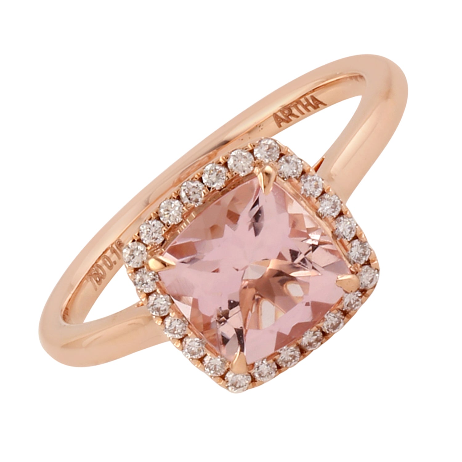 Square Morganite Gemstone Pave Diamond Solitaire Ring In 18k Rose Gold