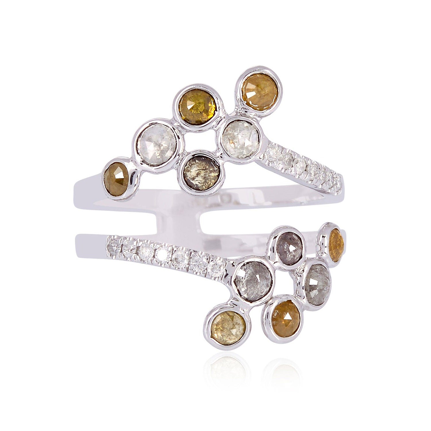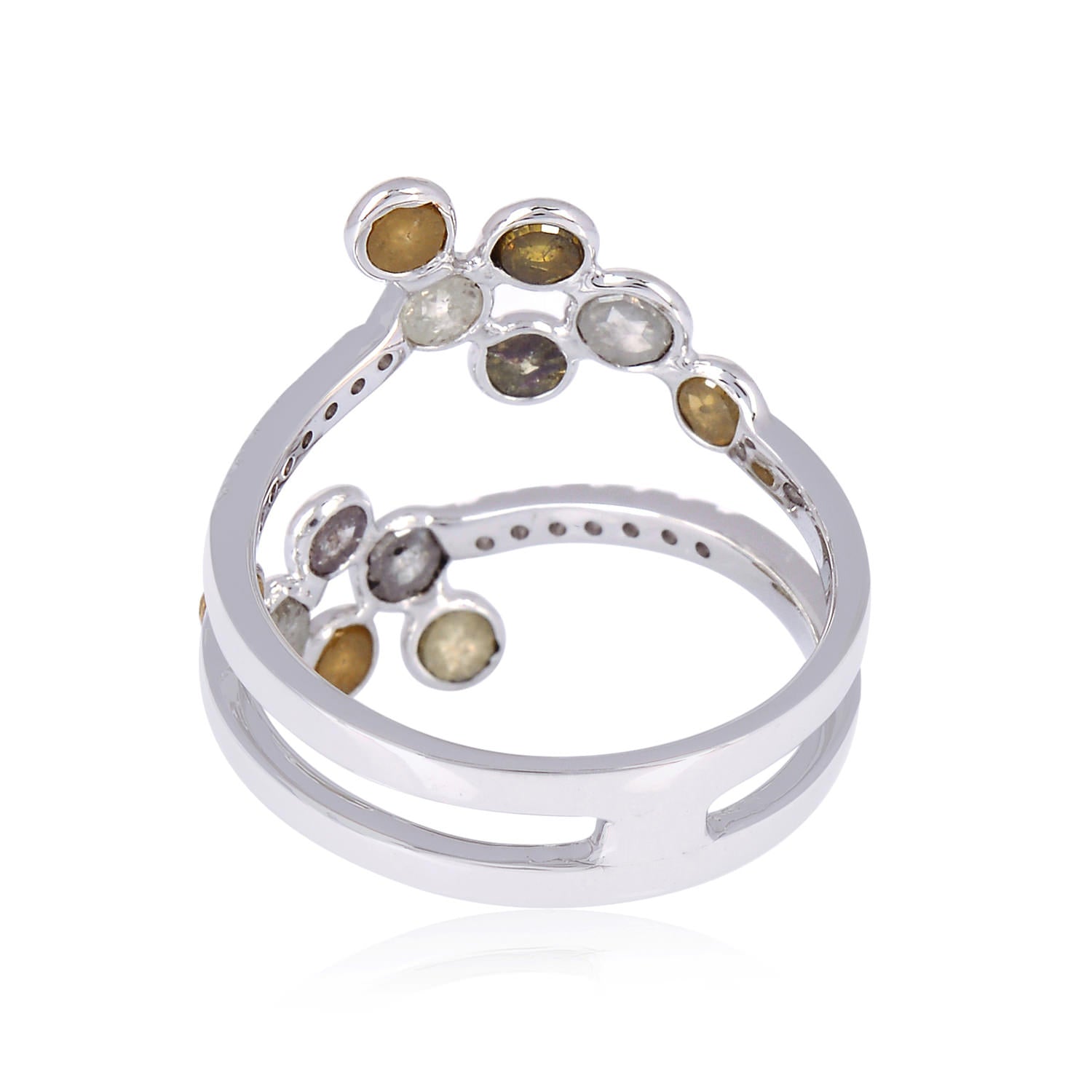 18K White Gold Bezel Set Ice Diamond Spiral Ring For Women's Gift
