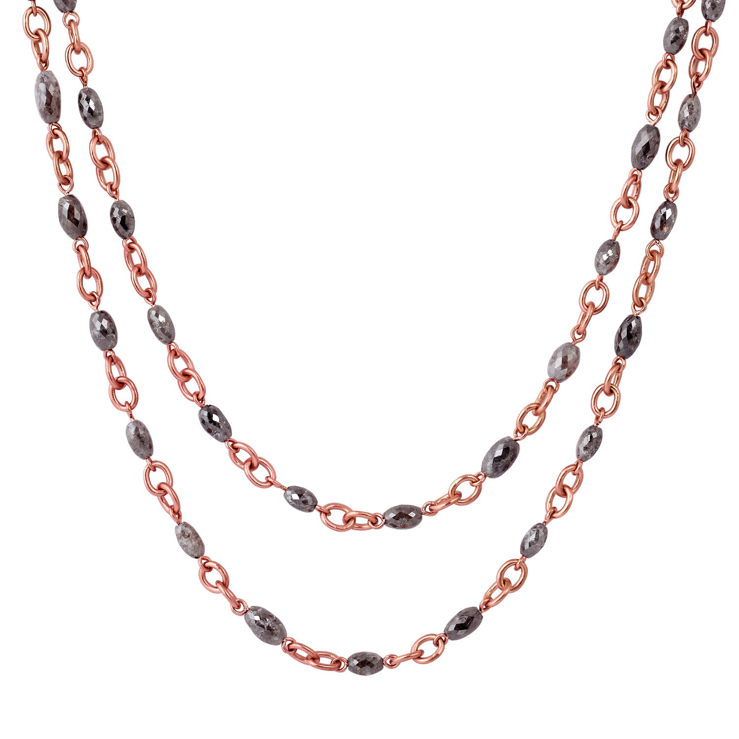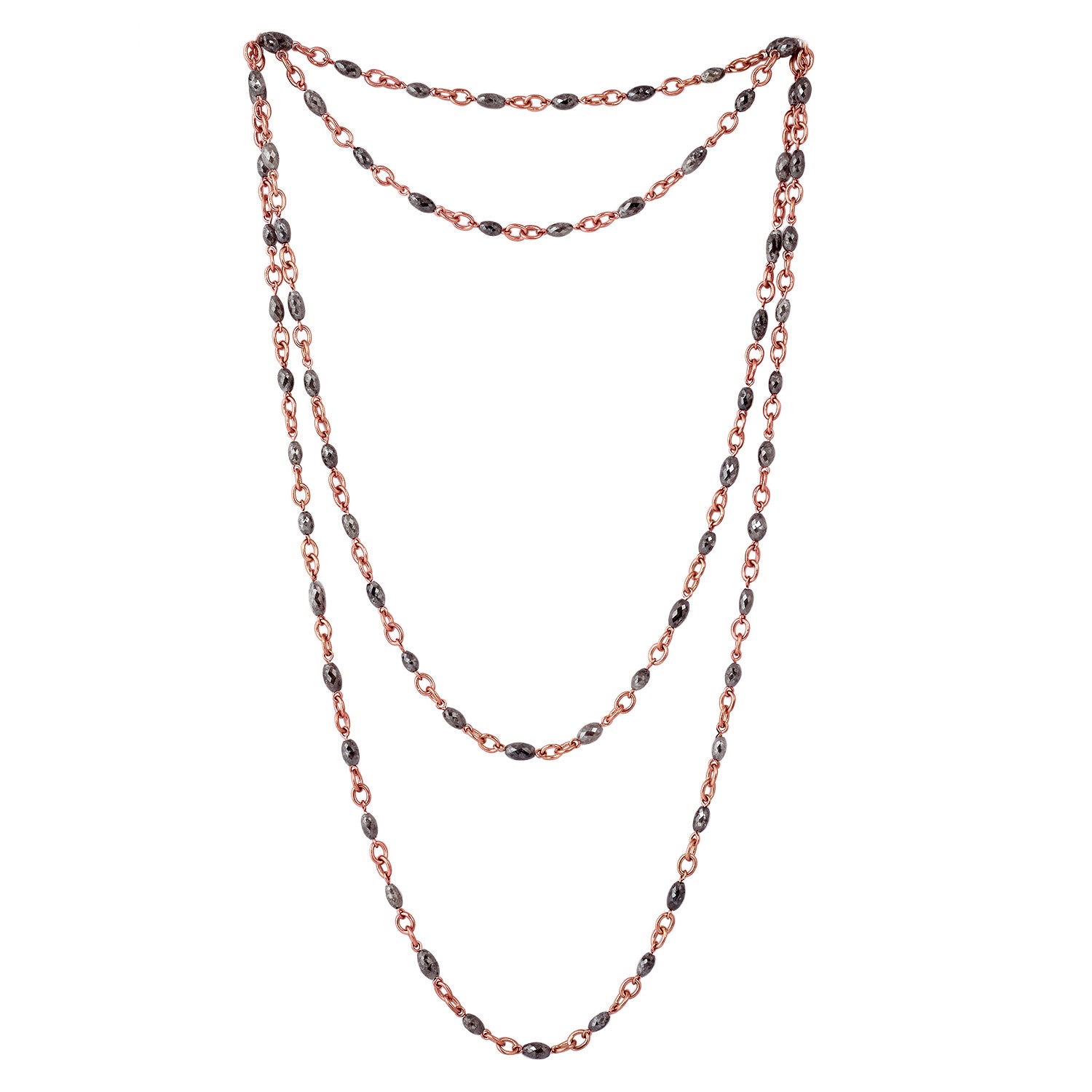18K Rose Gold Faceted Black Ice Diamond Beads Rope Lariat Long Necklace