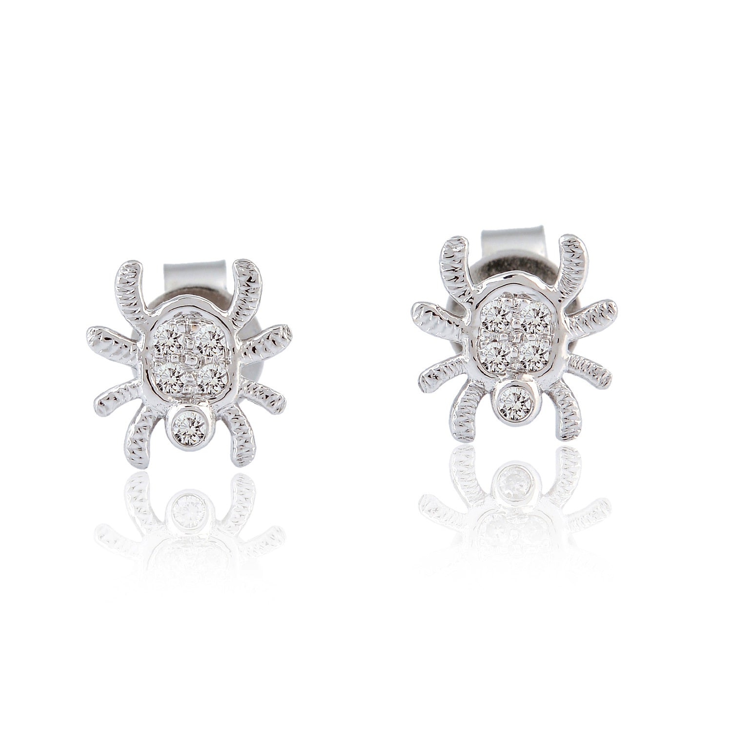• 18K White Gold Diamond Spider Stud Earrings Cute Sparkle Design