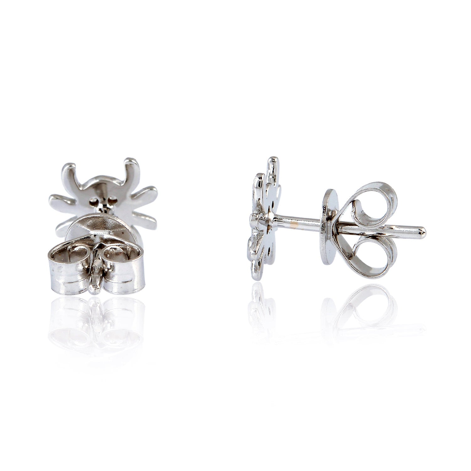 18K White Gold Diamond Spider Stud Earrings Cute Sparkle Design