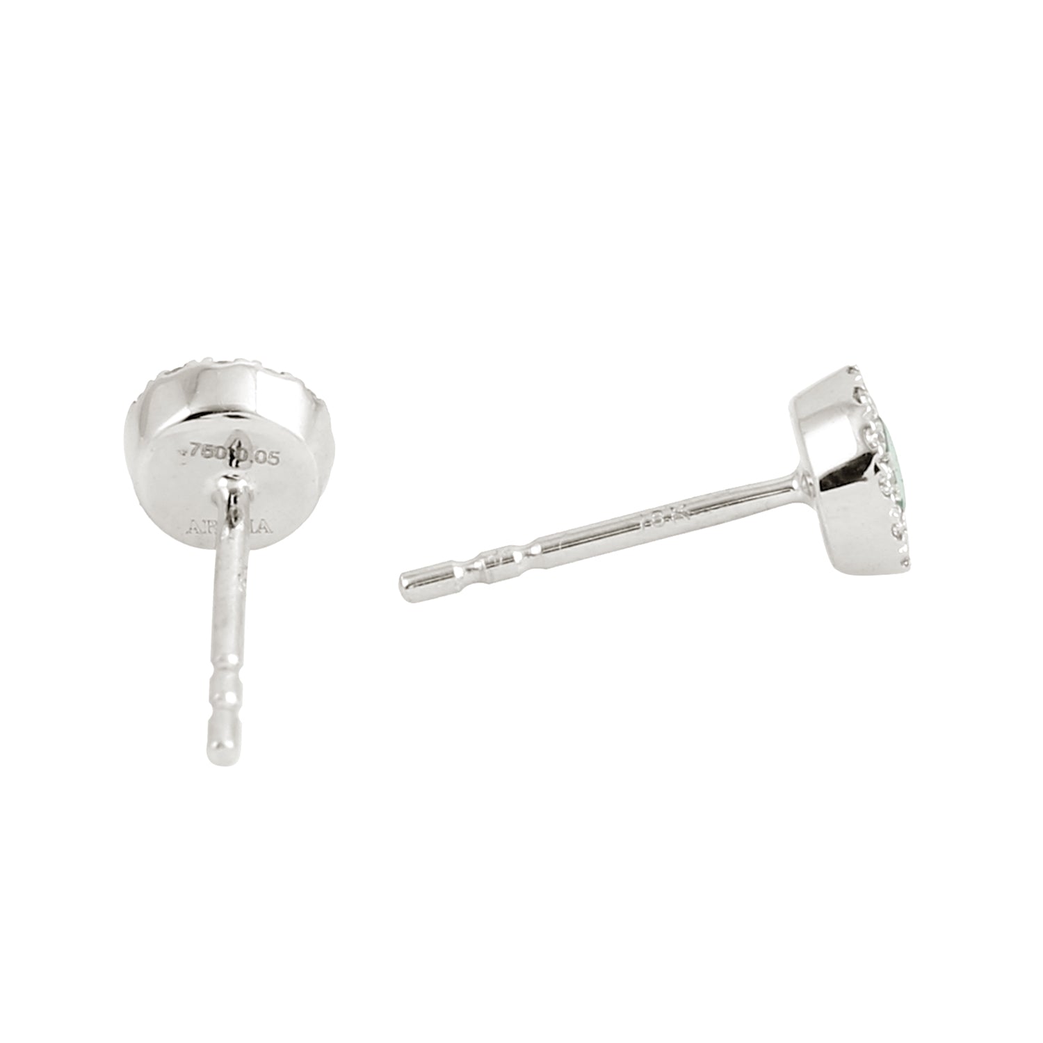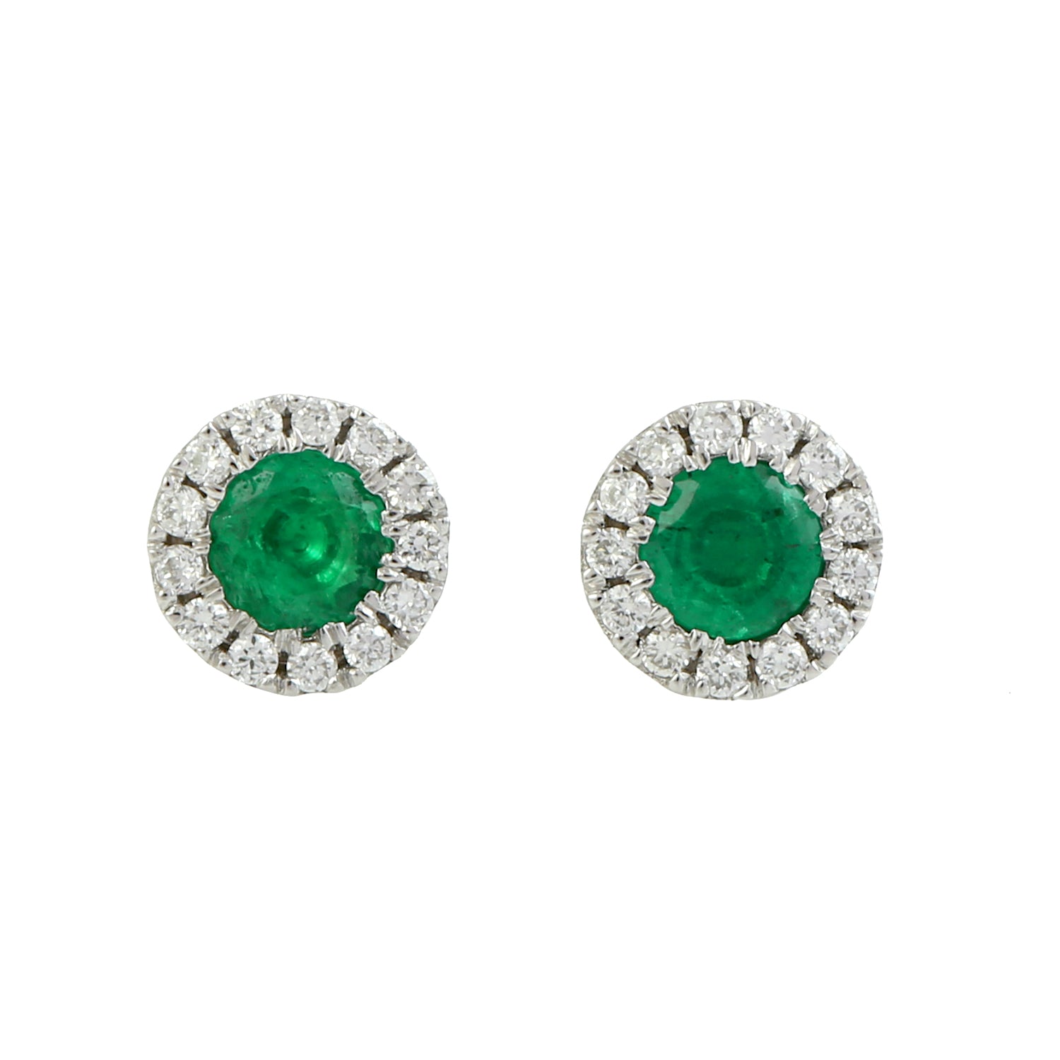 18K White Gold Round Emerald Halo Diamond Stud Earrings For Women's