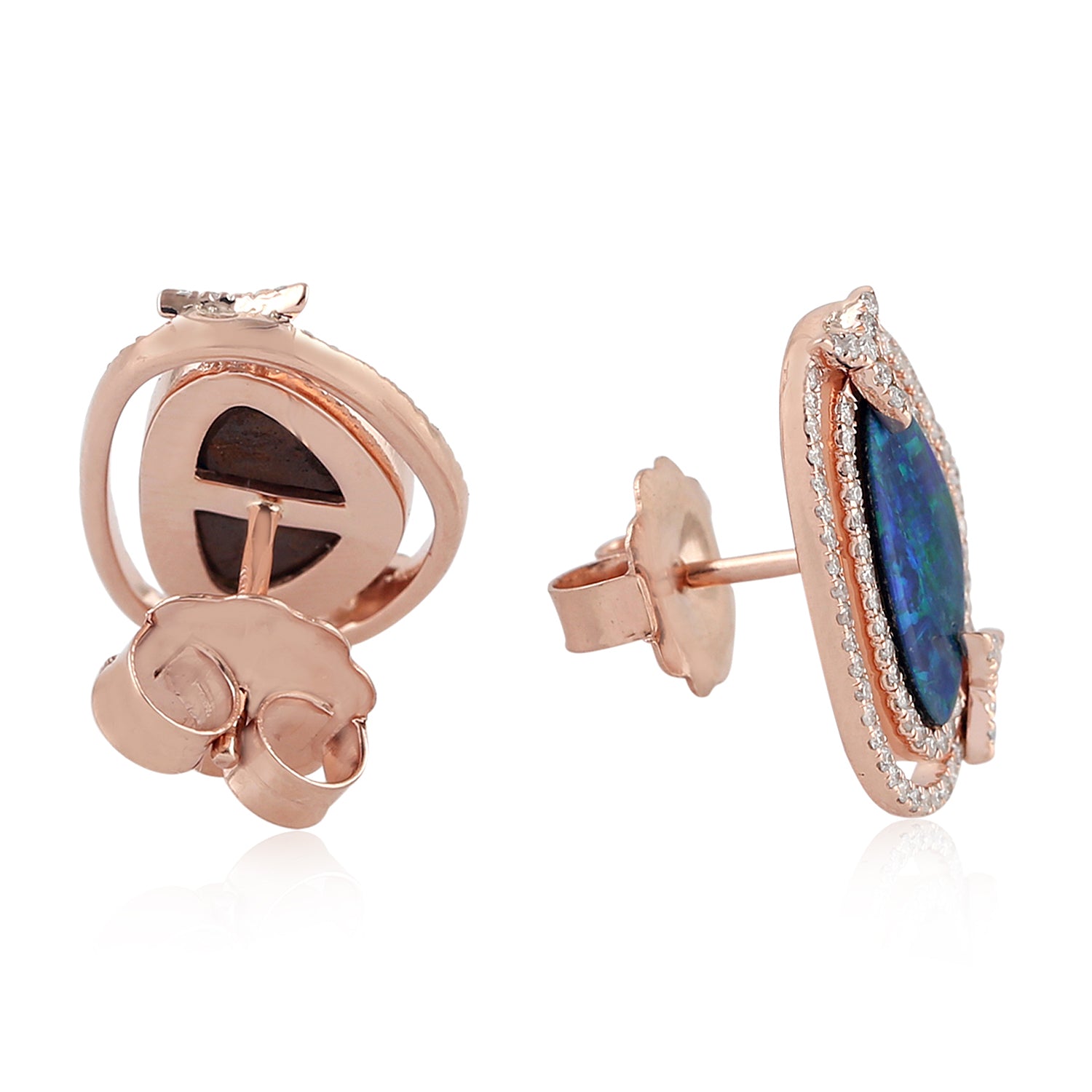 Blue Opal & Diamond Double Halo Teardrop Stud Earrings in 18K Rose Gold