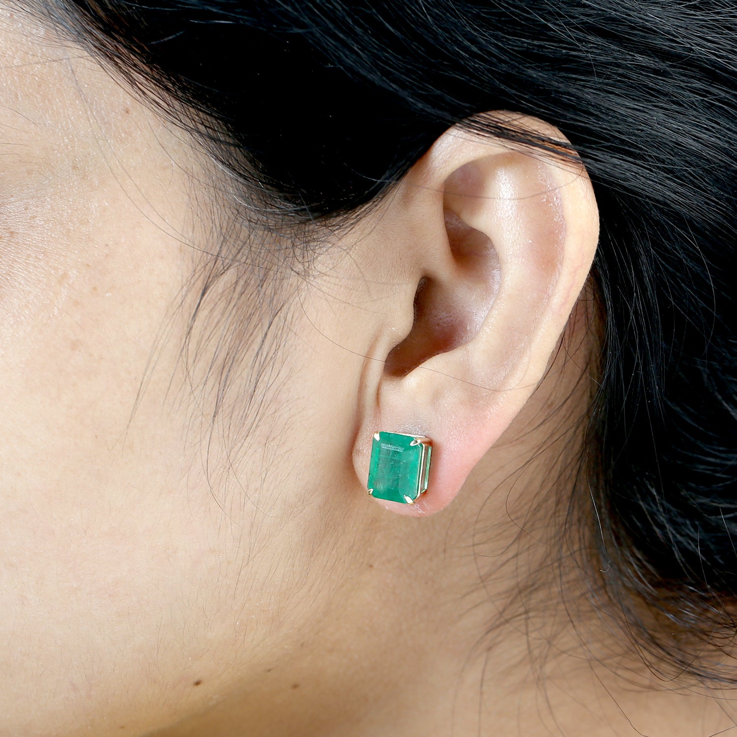 • Emerald Cut Emerald Stud Earrings in 14K Yellow Gold