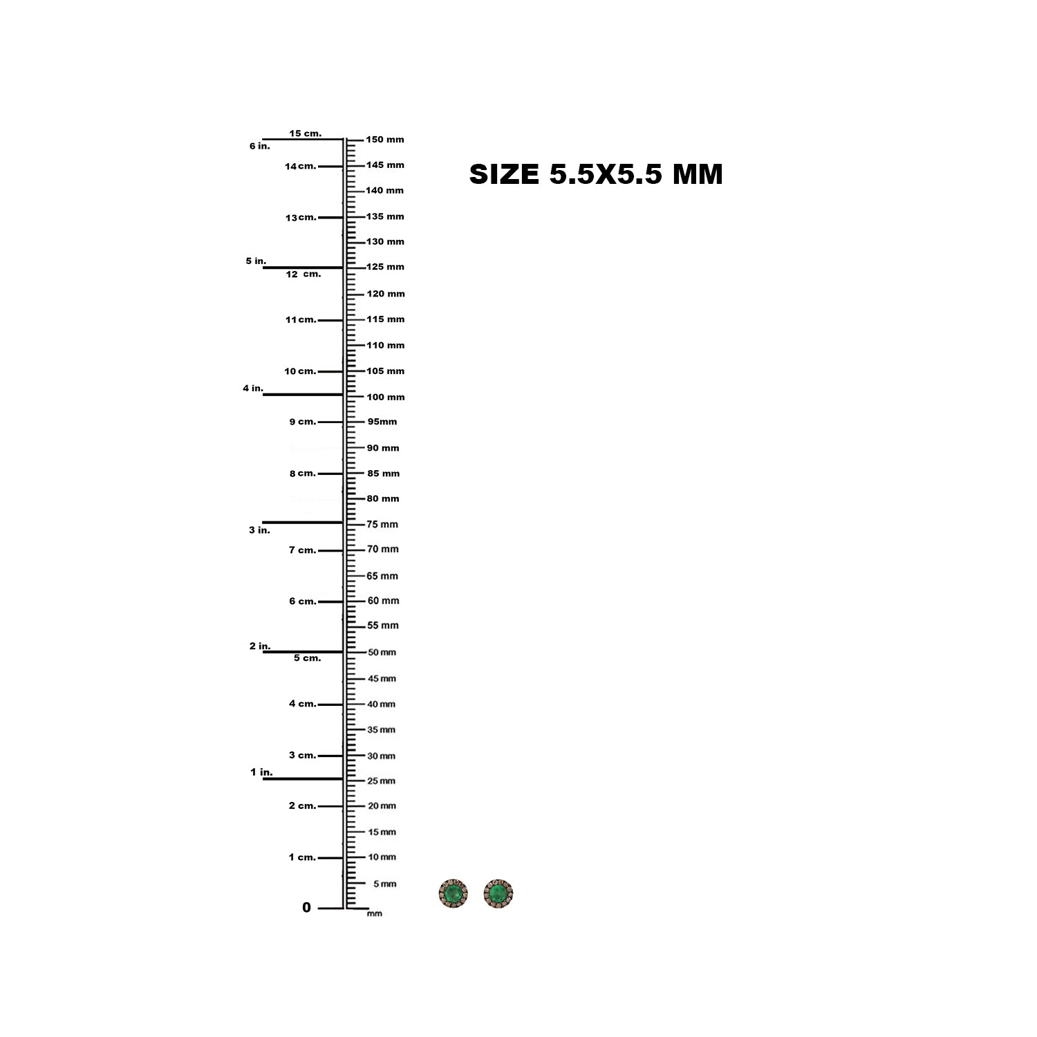 Emerald Gemstone Pave Diamond Round Mini Stud Earrings In 18k Yellow Gold