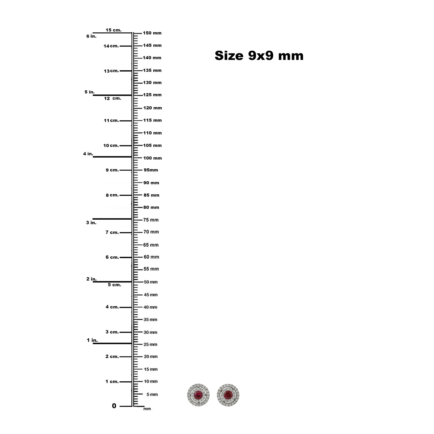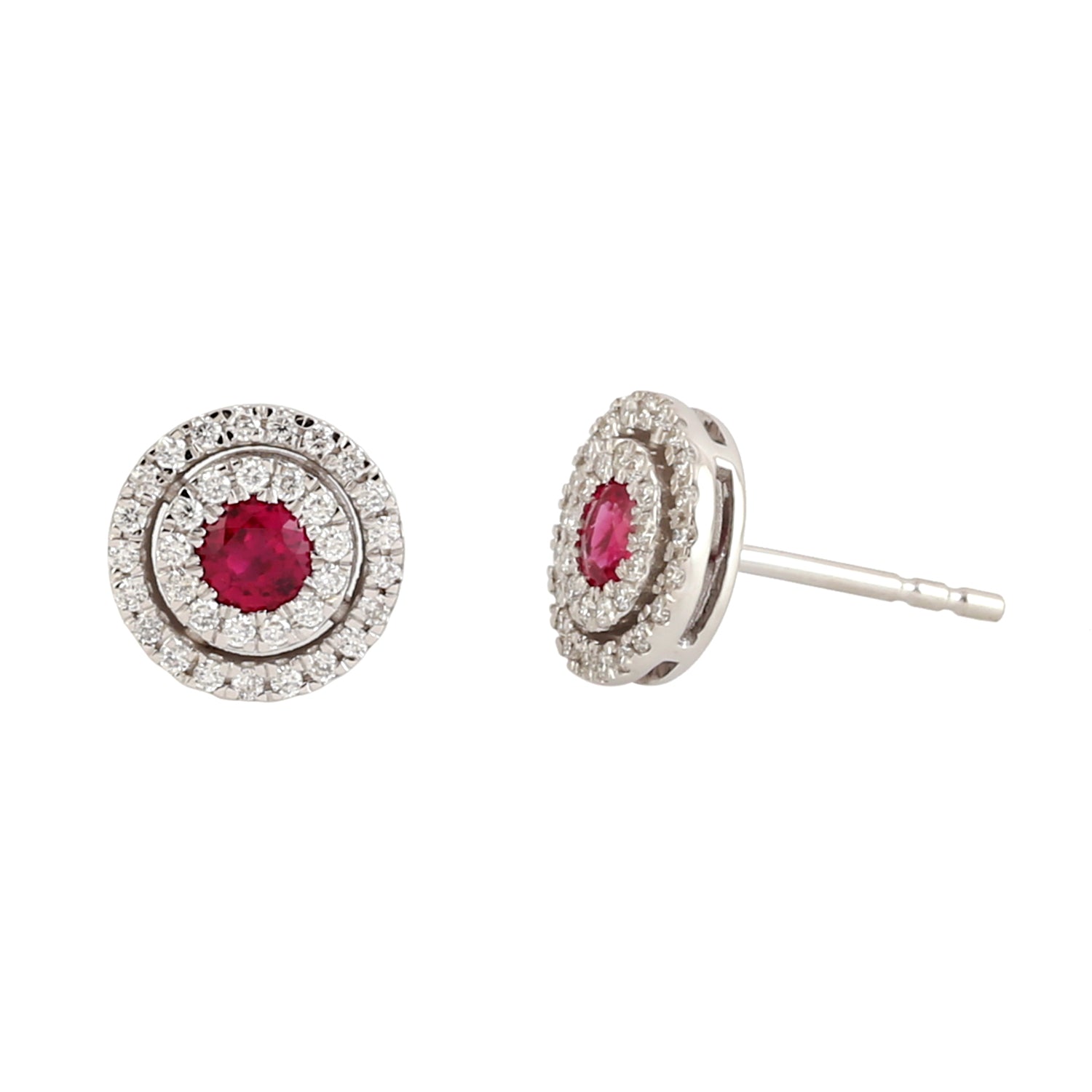 Ruby Pave Diamond Stud Earrings in 18k White Gold – Double Stud Without Push Backs