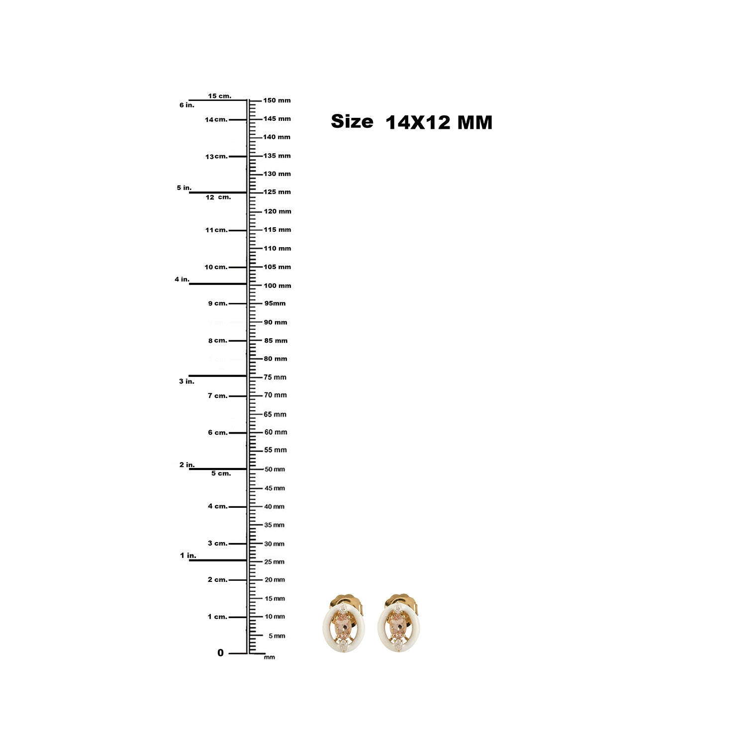 Oval Cut Morganite Rose Cut Diamond Enamel Stud Earrings In 14k Yellow Gold