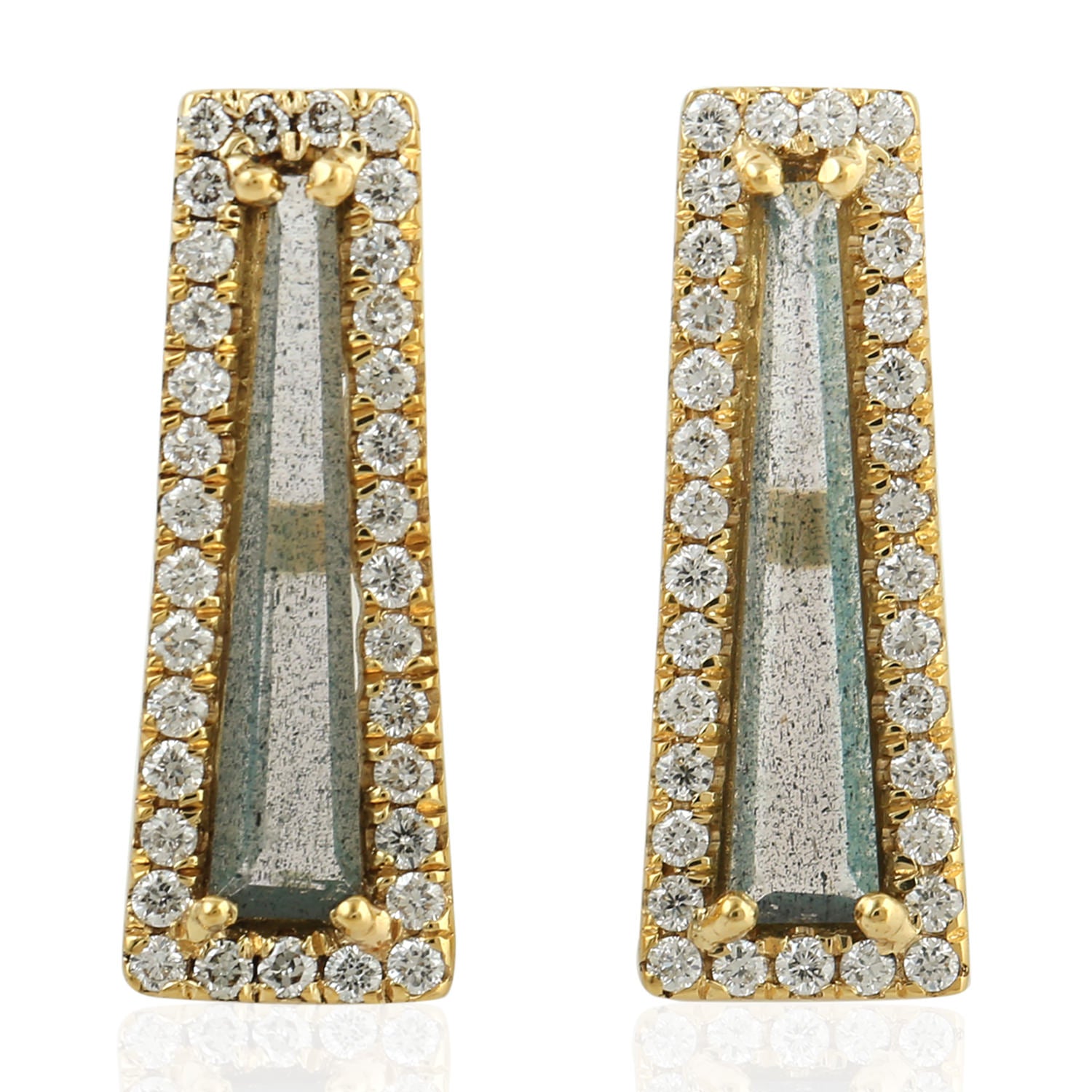 Tapered Labradorite Gemstone Pave Diamond Stud Earrings In 18k Yellow Gold