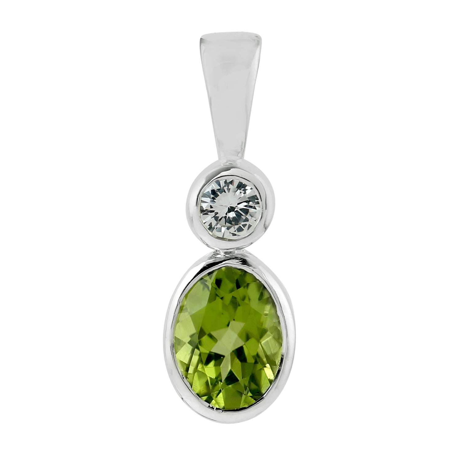 Peridot Pendant with Sapphire in 14k White Gold – August Birthstone Fine Jewelry