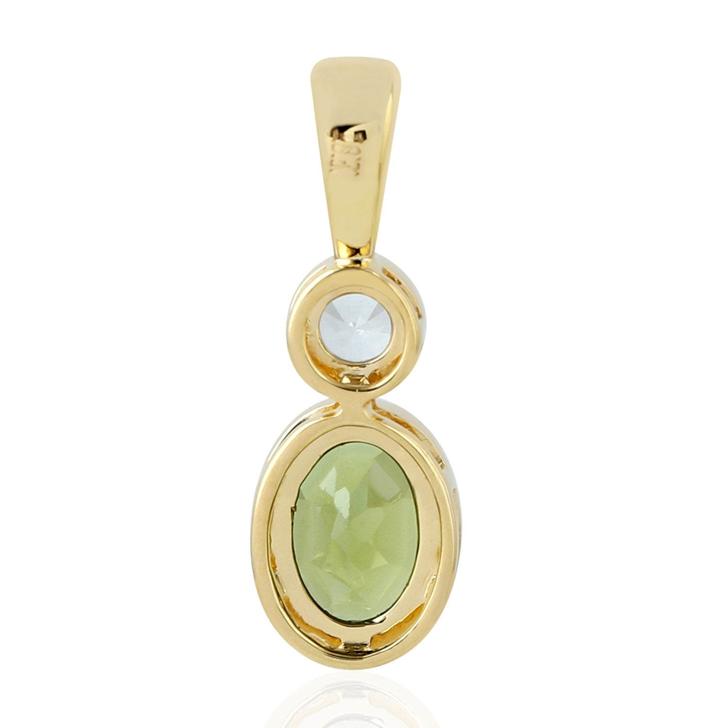 Oval Cut Peridot Round White Sapphire Charm Pendant In Yellow Gold