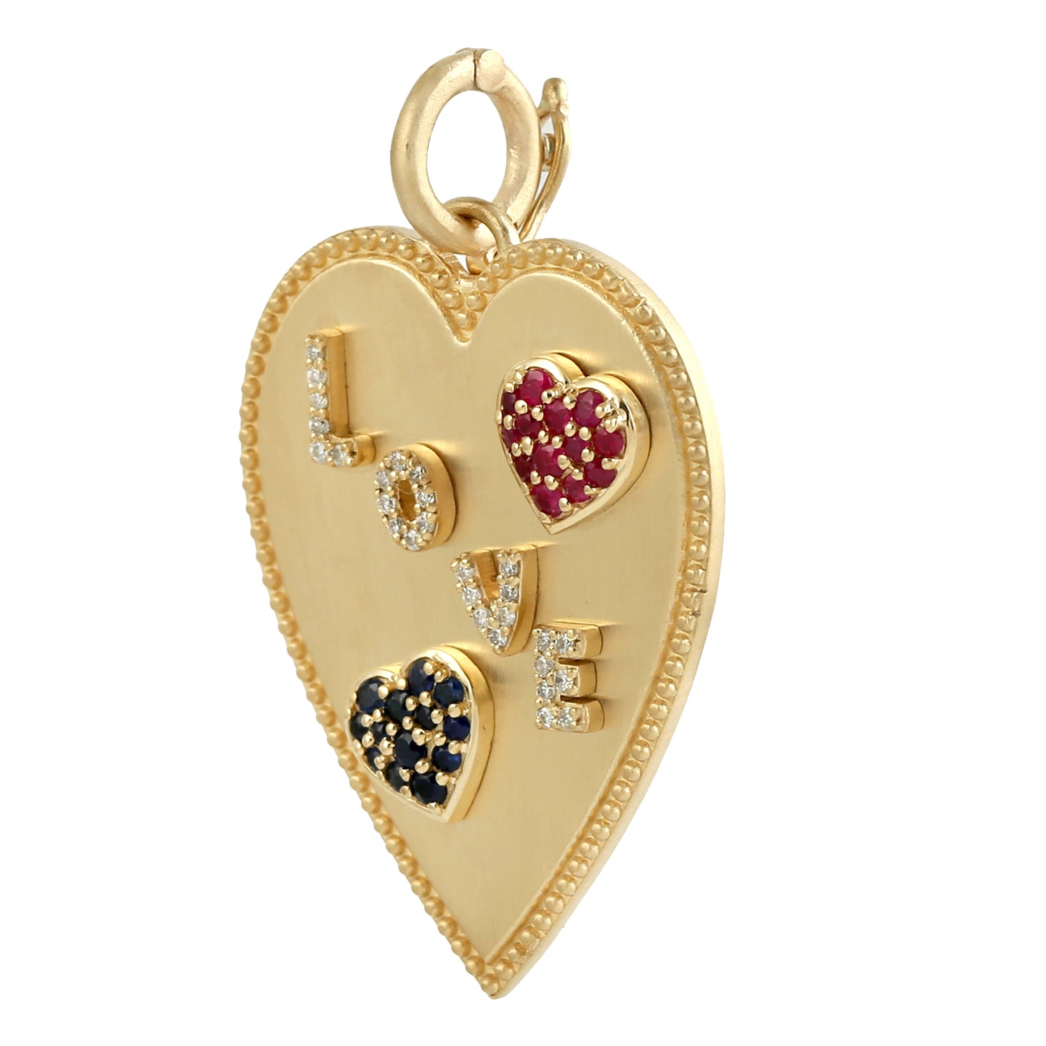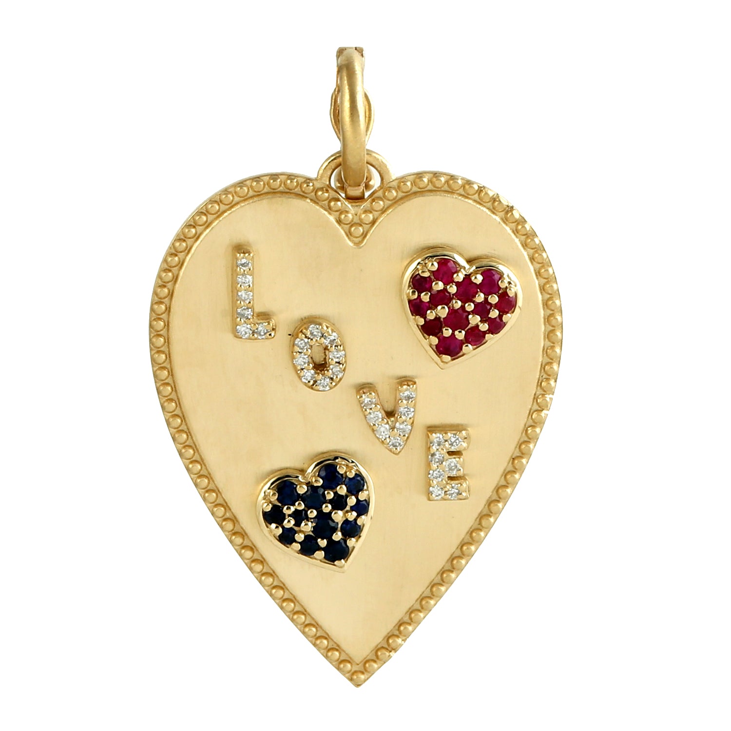 Ruby & Blue Sapphire Pave Diamond "Love" Alphabet Heart Pendant In 14K Yellow Gold