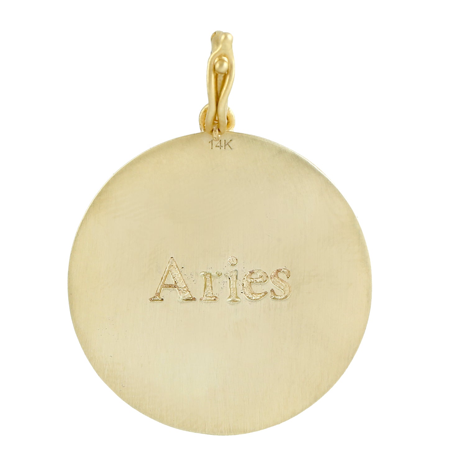 Aries Zodiac Medallion Pendant with Diamonds in 14K Yellow Gold