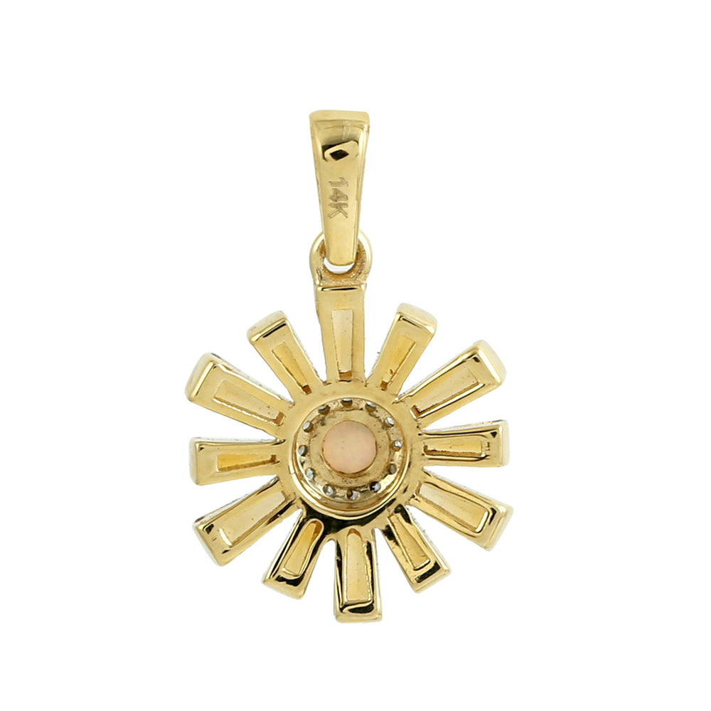 Tapered Citrine Opal Ethiopian Pave Diamond Sunburst Pendant In 18k Yellow Gold